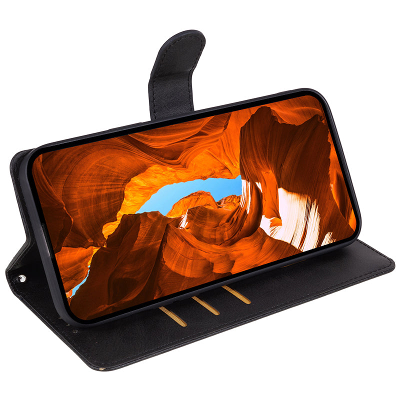 Shockproof Cover for Motorola Edge 50 Fusion Case Magnetic Calf Texture Wallet Phone Shell - Black