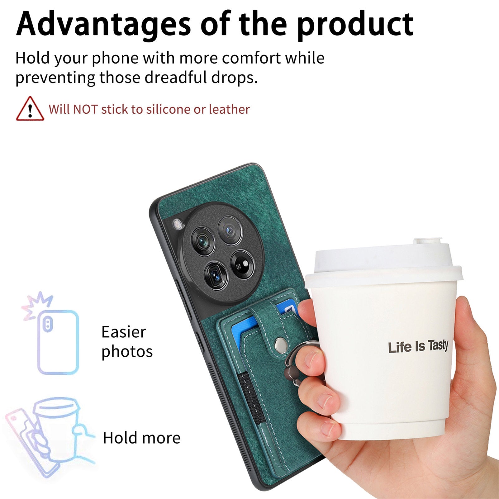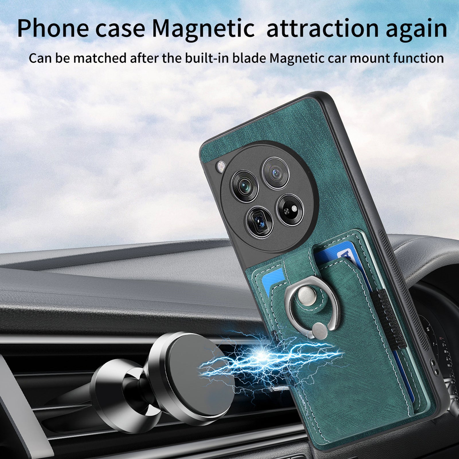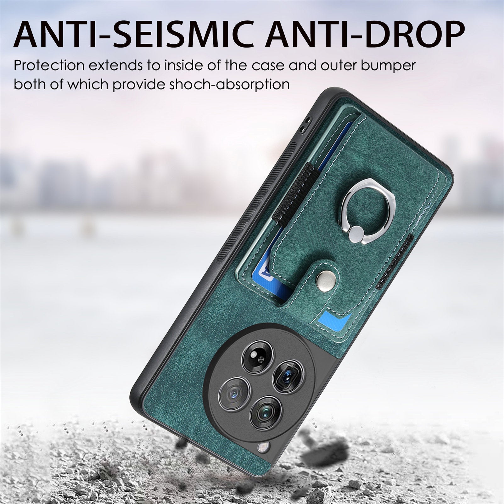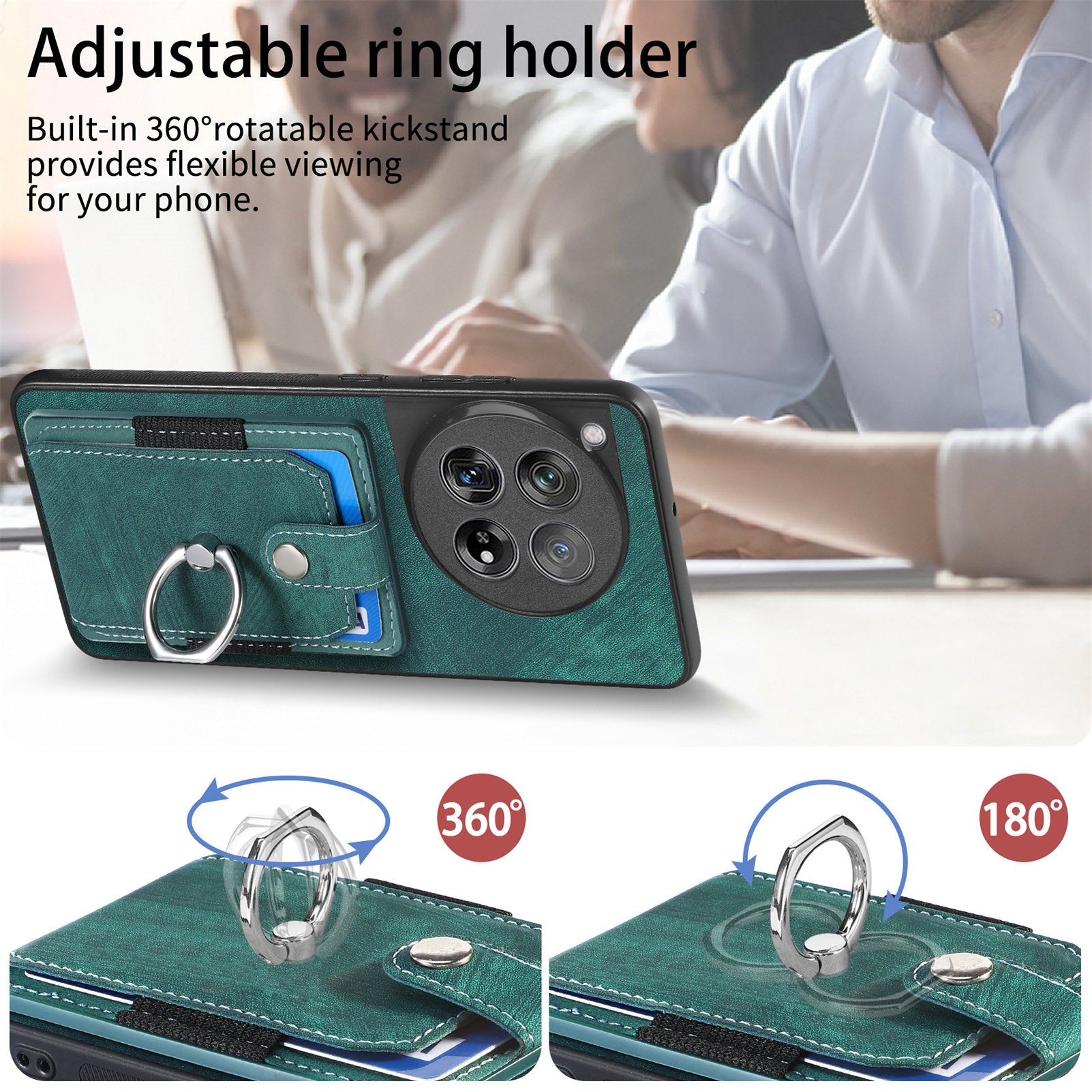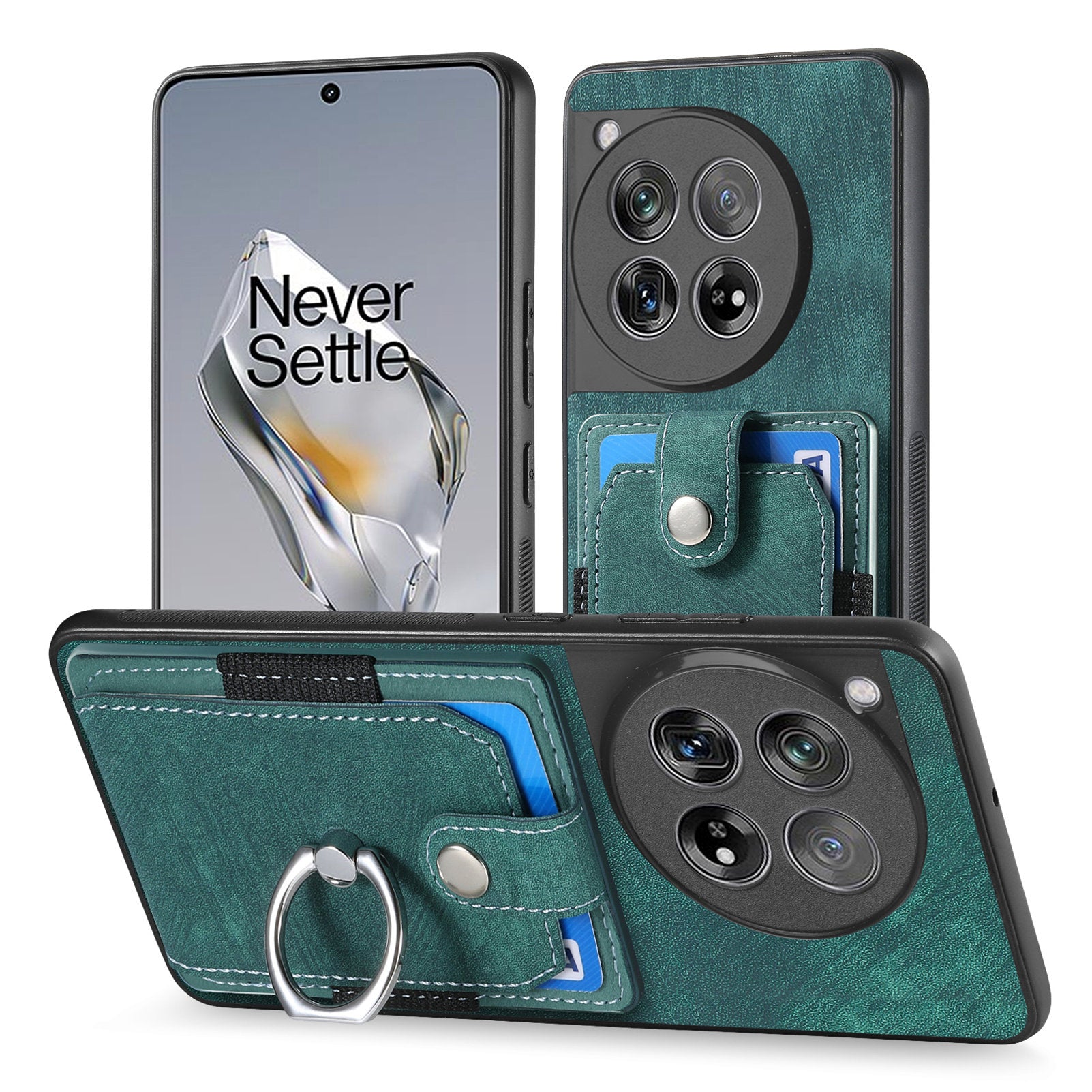D2 Phone Cover for OnePlus 12 5G Case Retro Drop-resistant Leather+TPU Kickstand Shell - Green