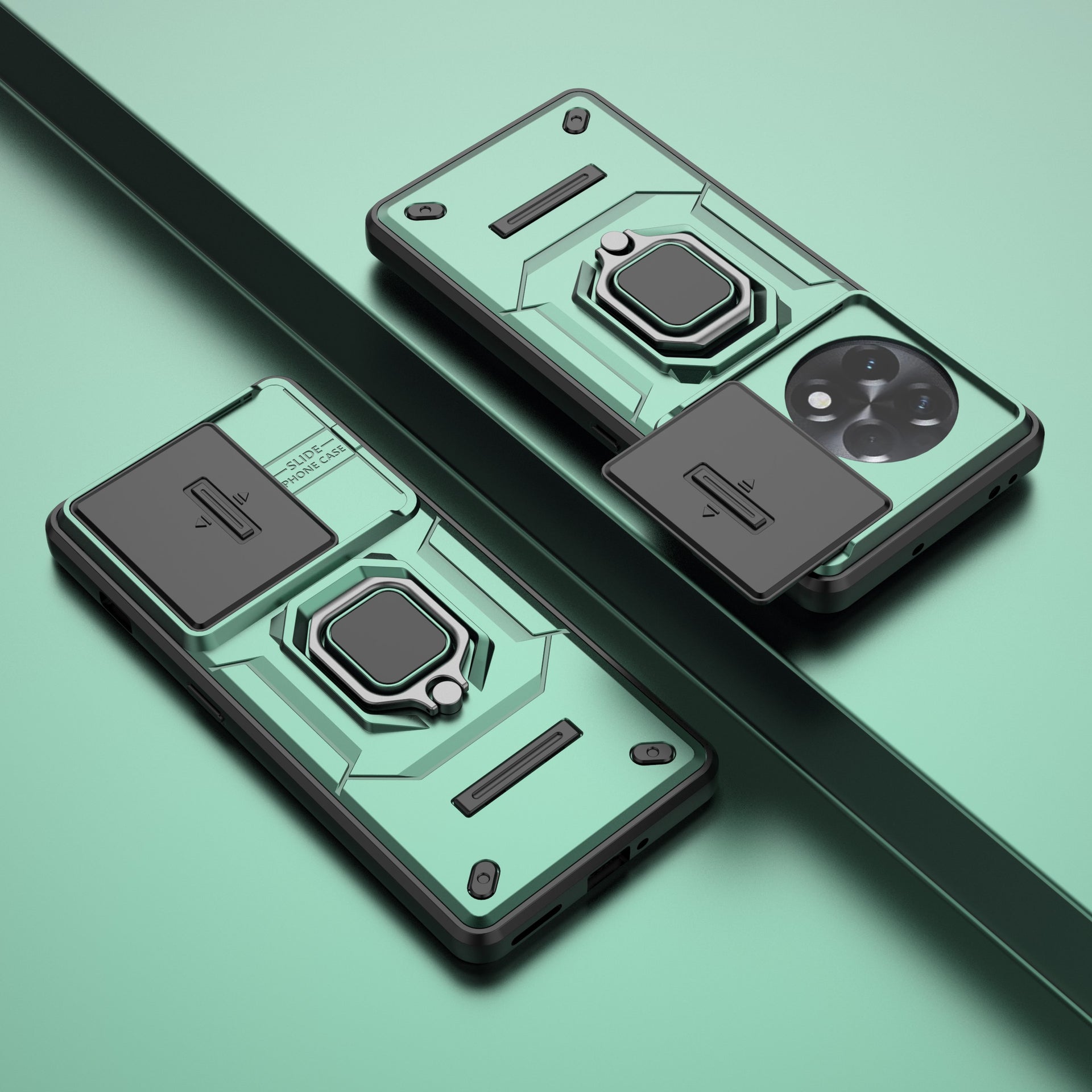 For OnePlus 11R 5G / Ace 2 5G Case Slide Lens Lid PC+TPU Kickstand Cover - Green