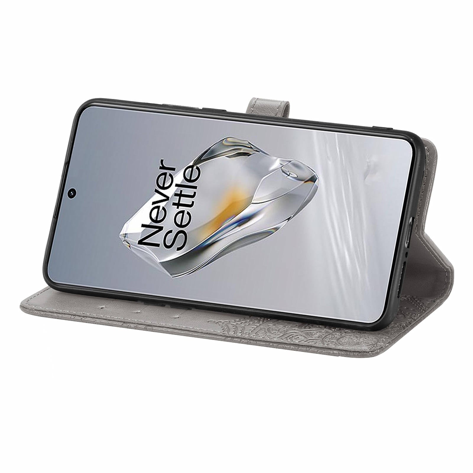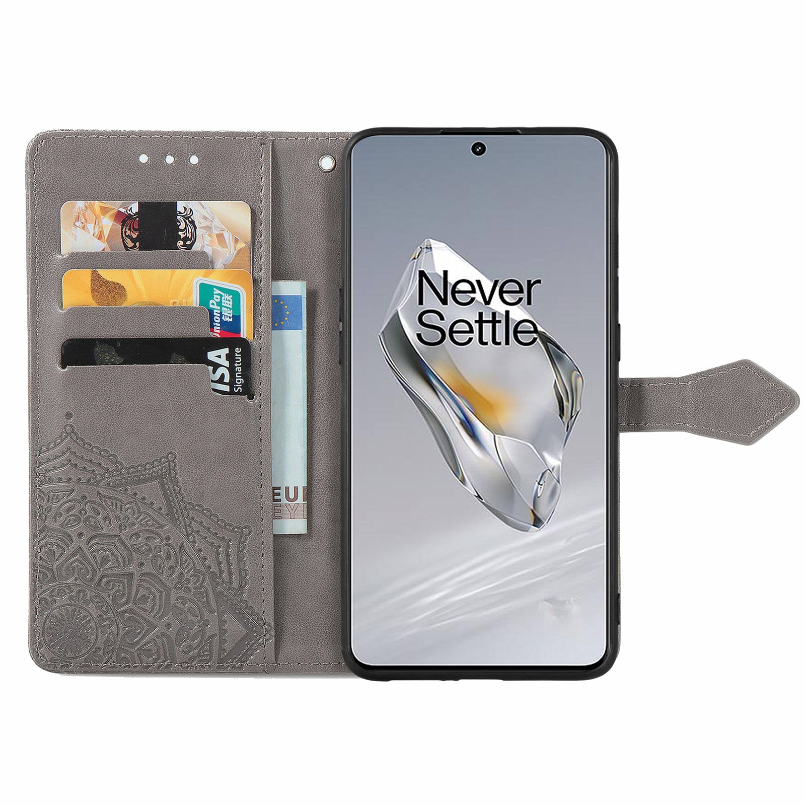 For OnePlus 12 5G Anti-scratch Phone Cover Emboss Mandala Flower Leather Wallet Case - Grey