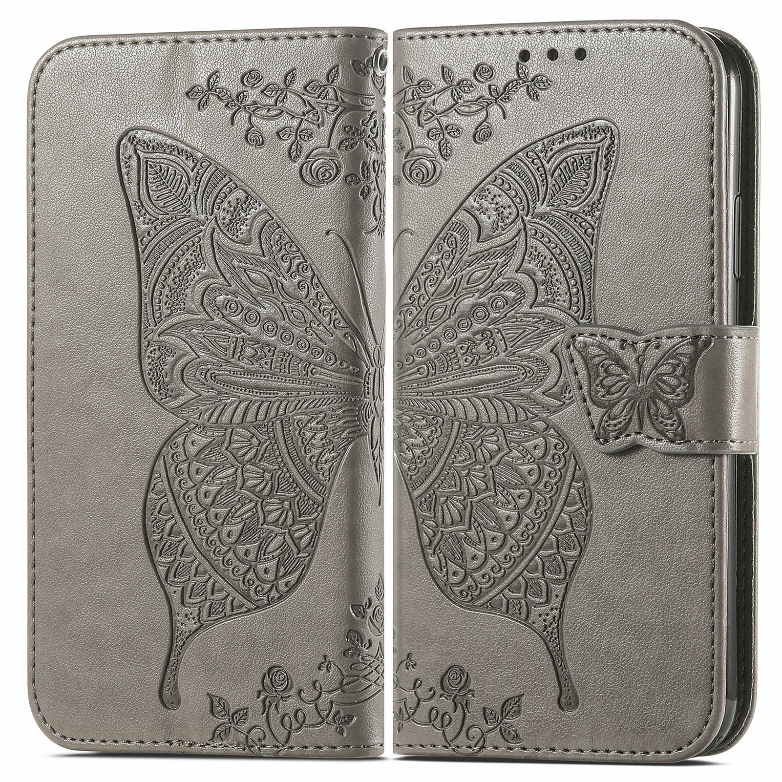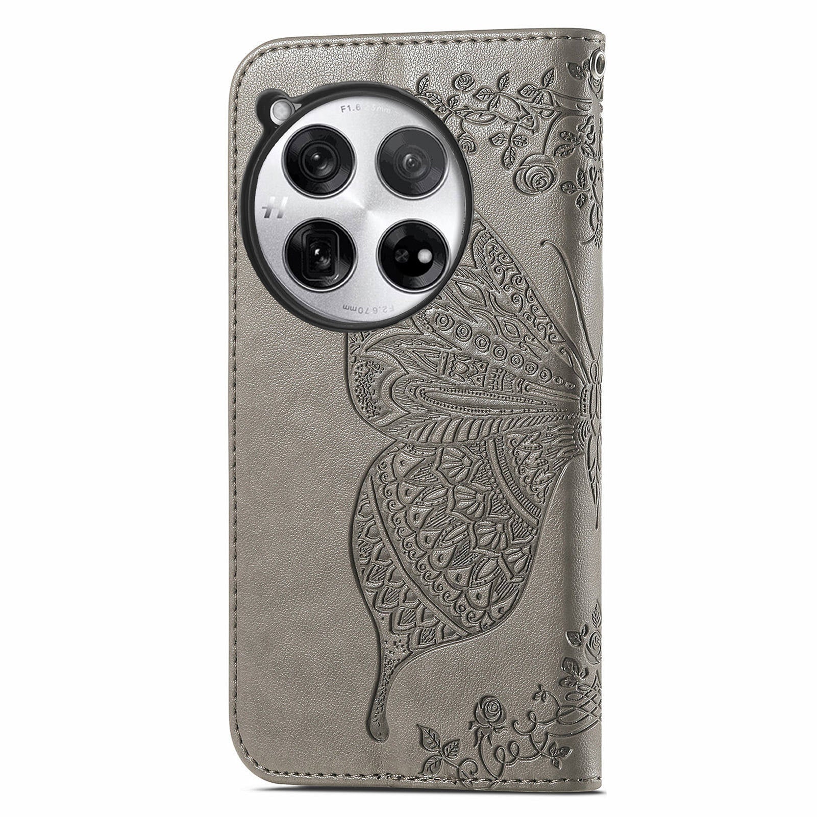 For OnePlus 12 5G Case PU Leather Butterfly Pattern Magnetic Flip Phone Cover - Grey