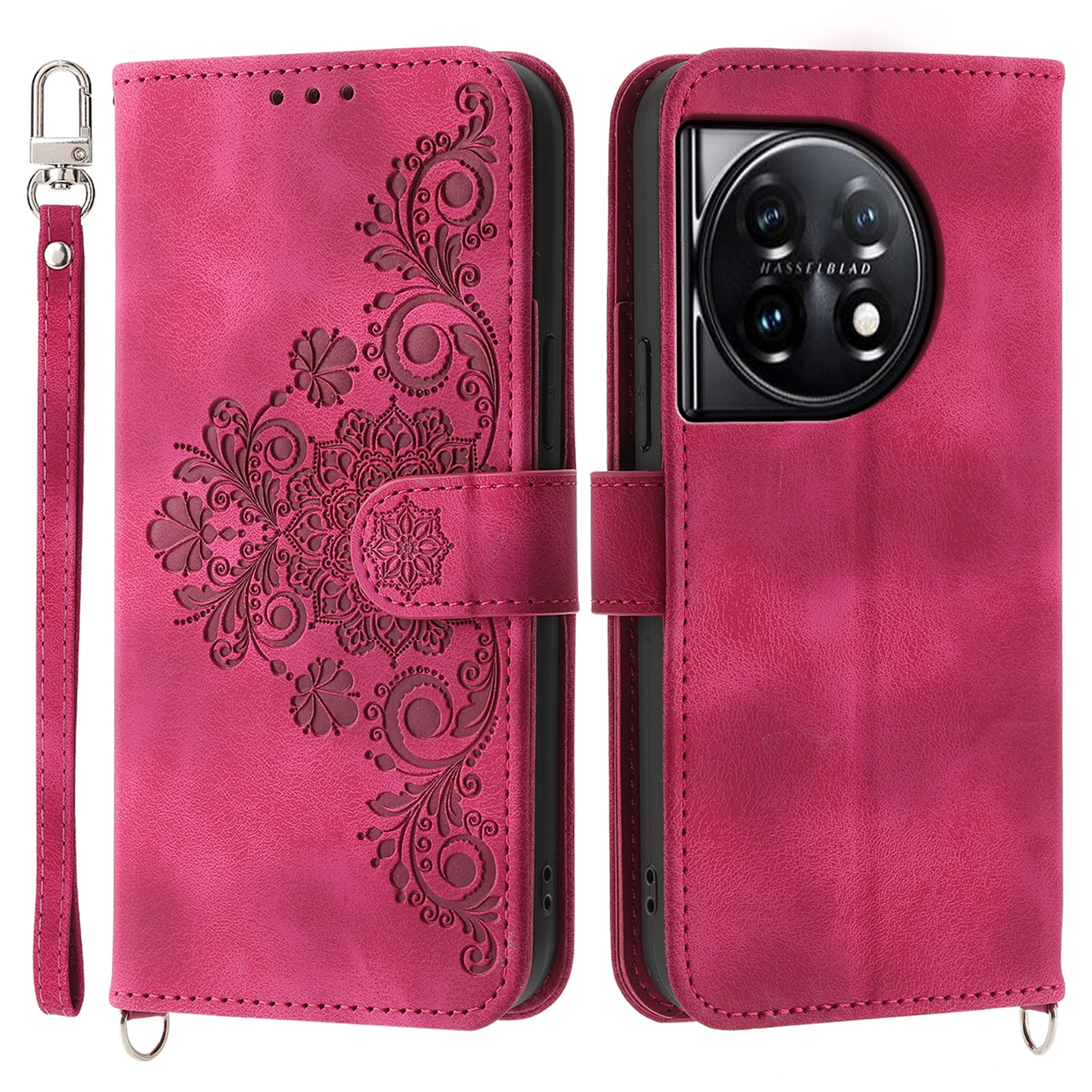 For OnePlus Ace 3 5G / 12R 5G Case Flower Leather Phone Cover with Multiple Card Slots - Wine Red