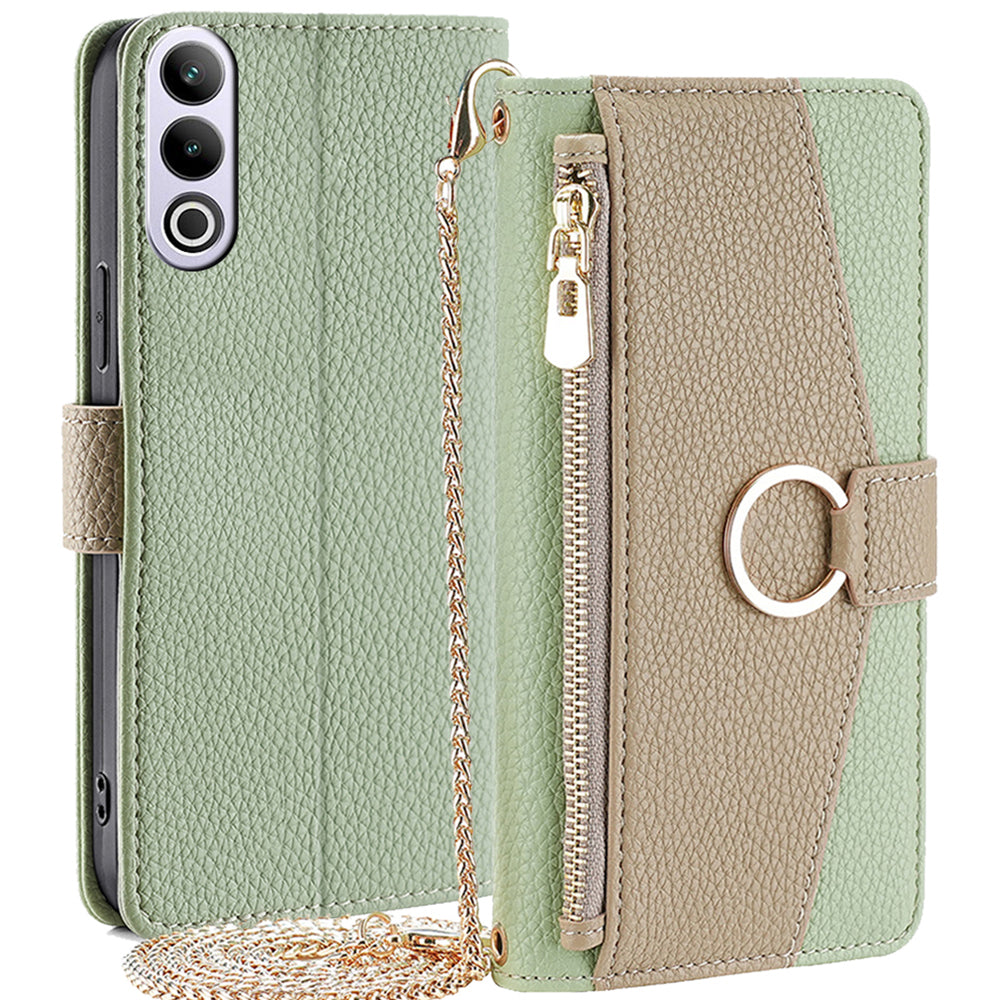 For OnePlus Ace 3V 5G Case Zipper Wallet Mirror Crossbody Phone Cover with Long Strap - Green