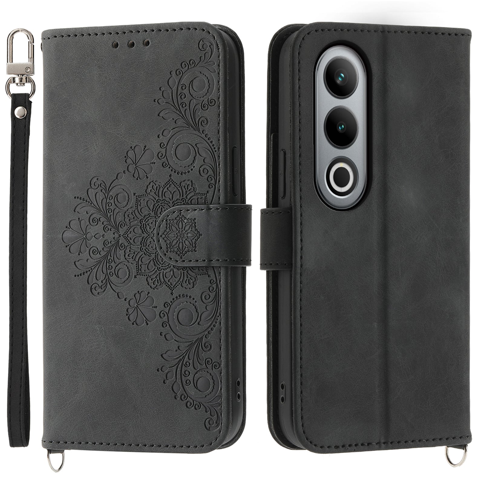 For OnePlus Ace 3V 5G Leather Case with Straps Flower Phone Cover Wholesale - Black