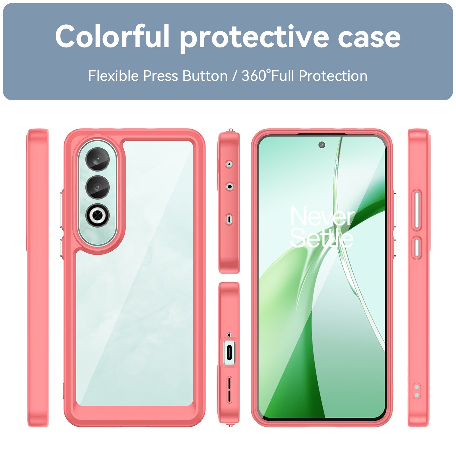 For OnePlus Nord CE4 5G Case Drop-Proof TPU Frame Clear Acrylic Protective Phone Shell - Red