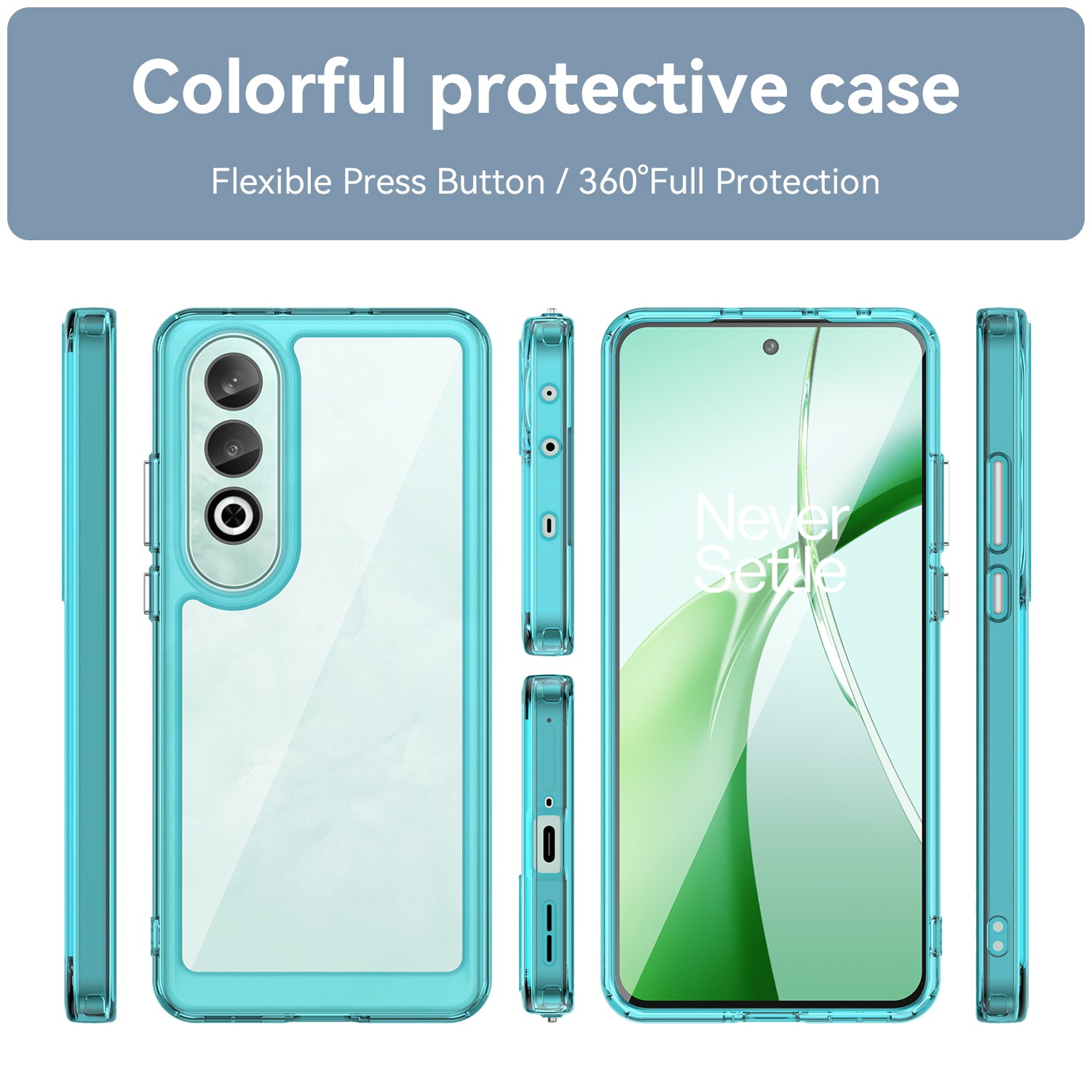 For OnePlus Nord CE4 5G Case Drop-Proof TPU Frame Clear Acrylic Protective Phone Shell - Transparent Blue