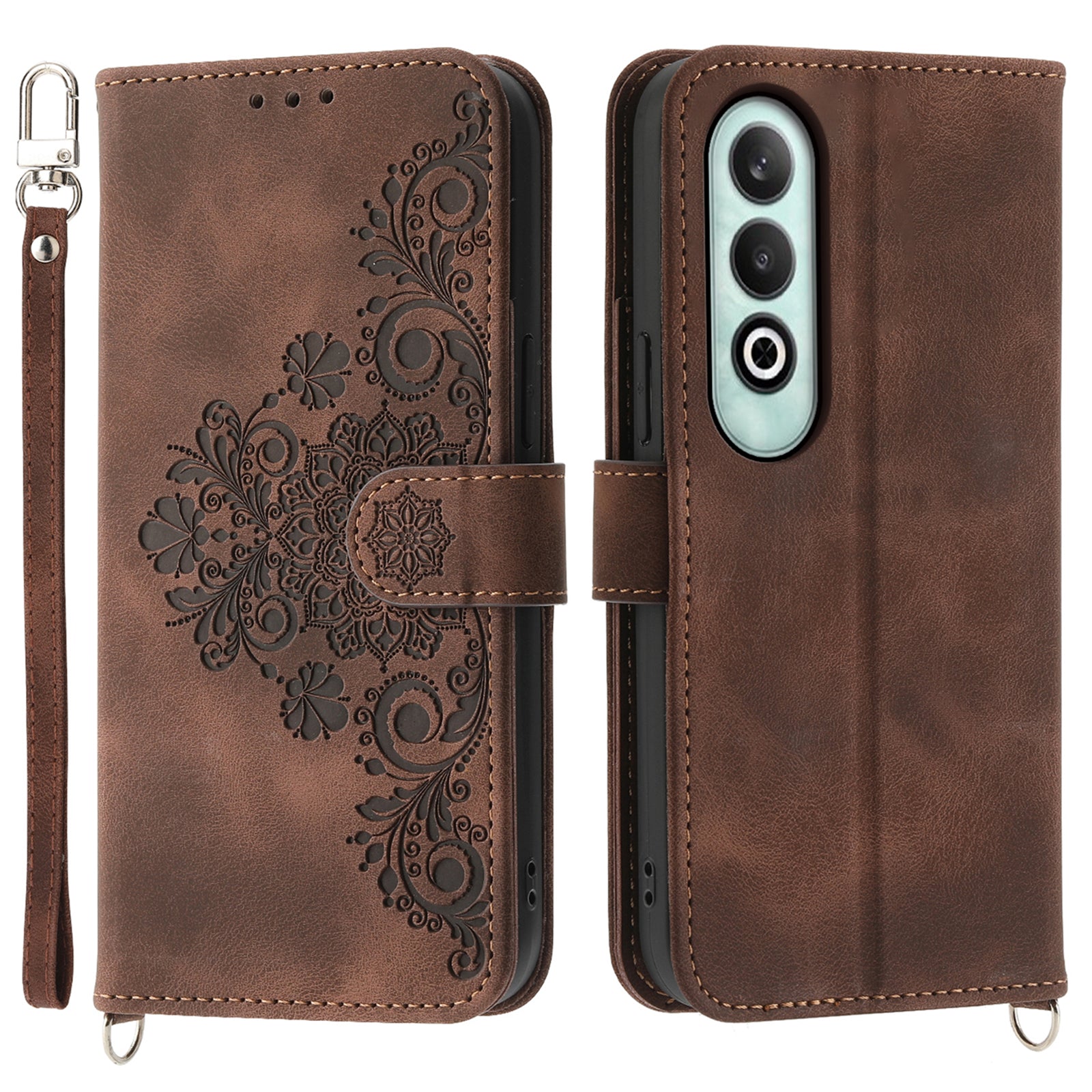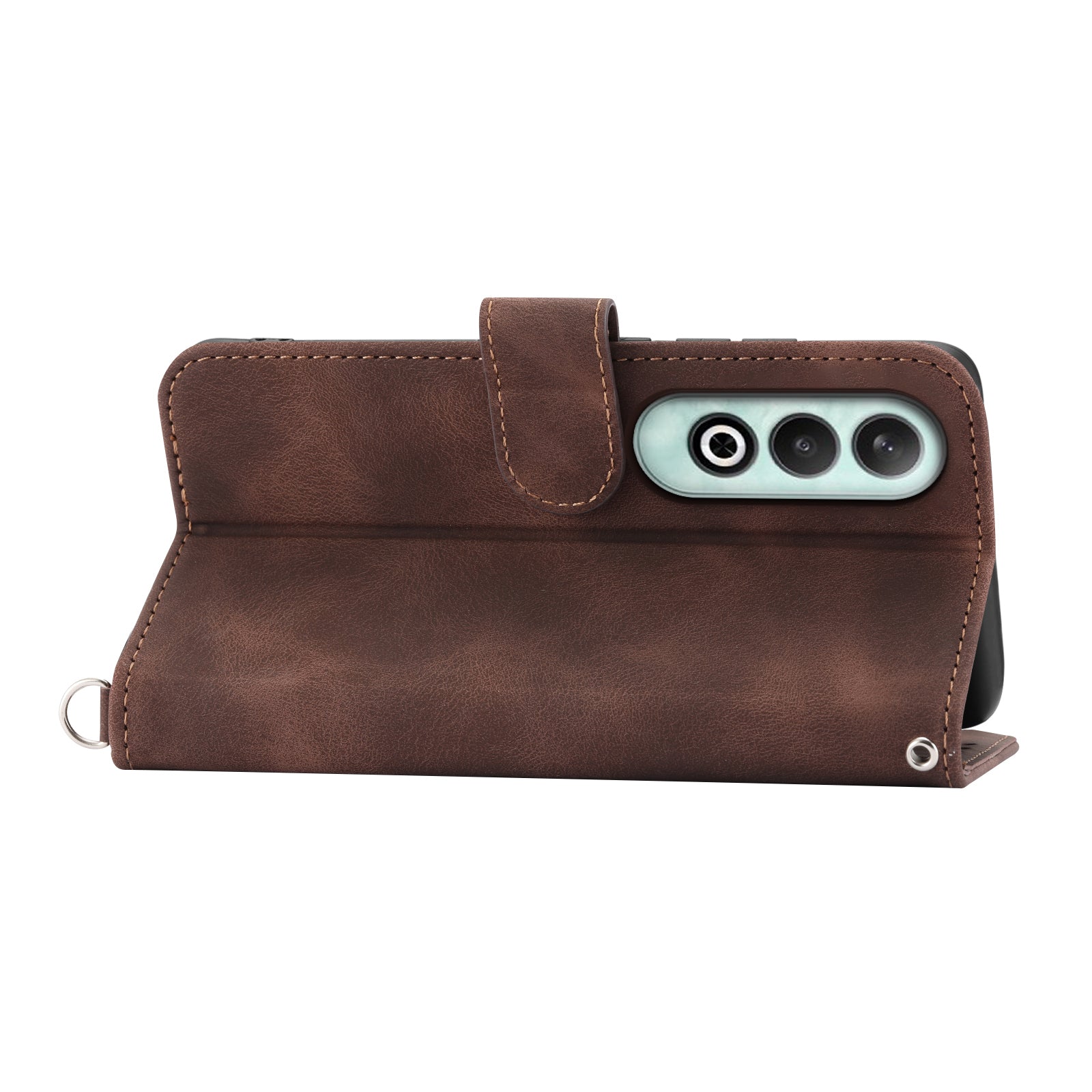 For OnePlus Nord CE4 5G Leather Case Wallet Phone Cover with Hand Strap and Shoulder Strap - Brown