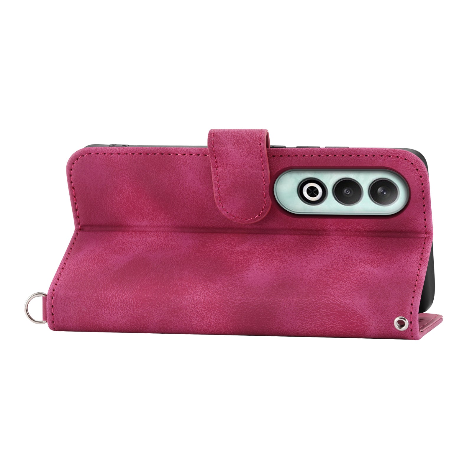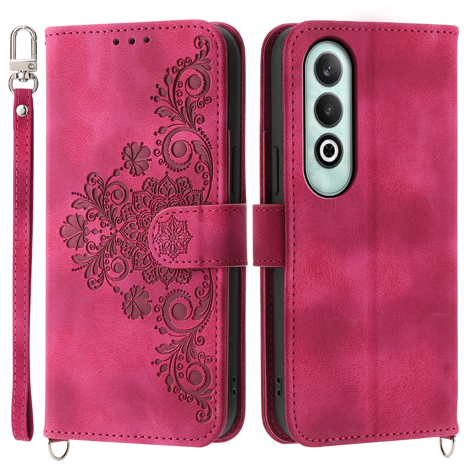 For OnePlus Nord CE4 5G Leather Case Wallet Phone Cover with Hand Strap and Shoulder Strap - Wine Red