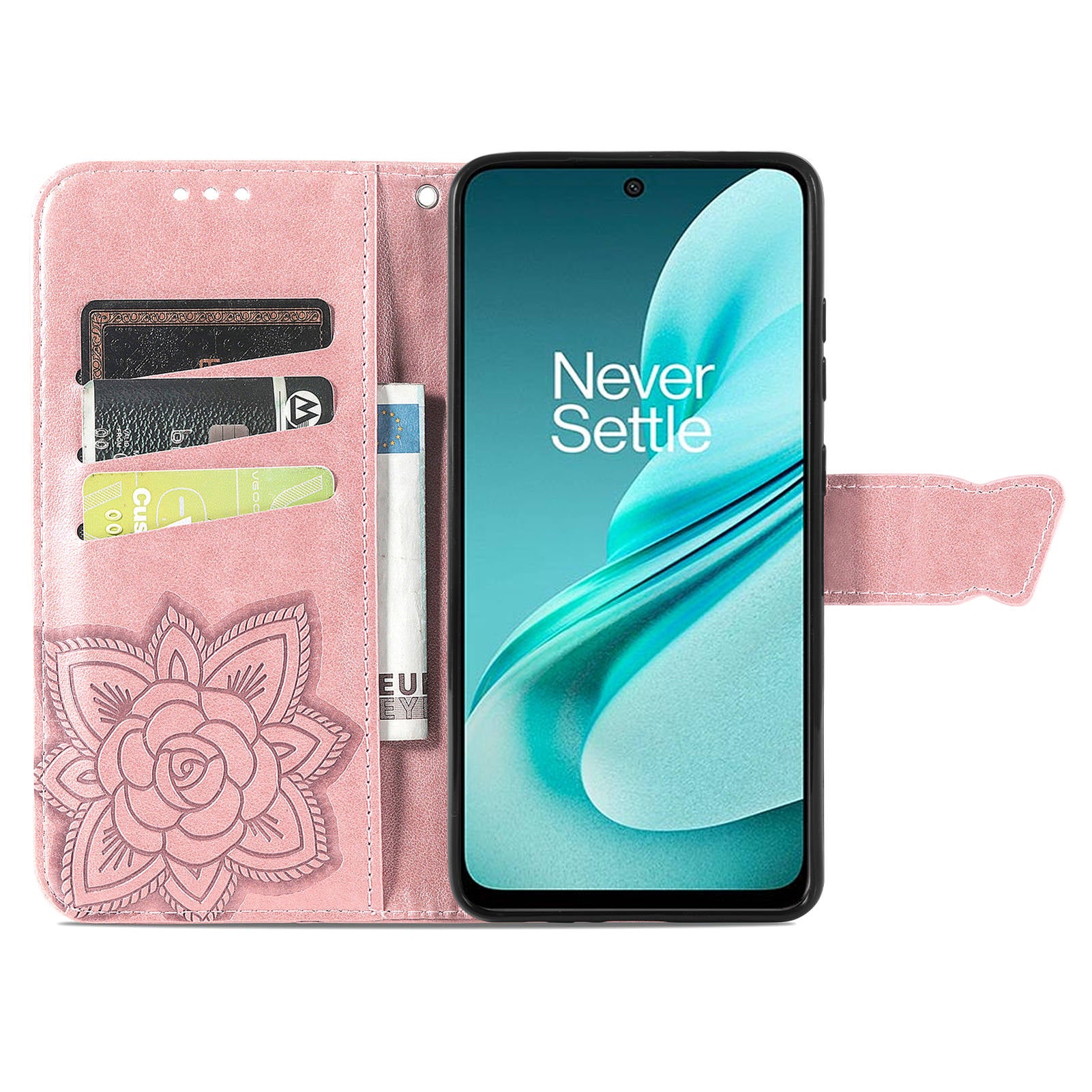 For OnePlus Nord N30 SE 5G Case PU Leather Butterfly Imprinted Stand Card Holders Phone Cover - Rose Gold