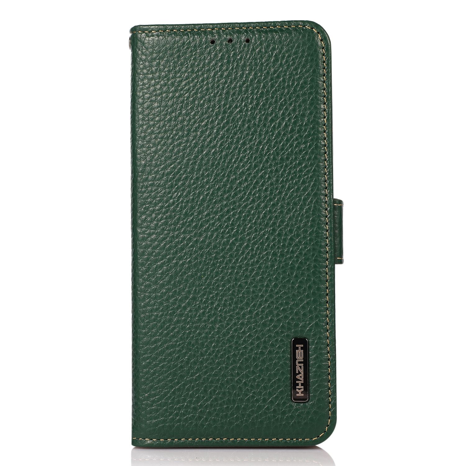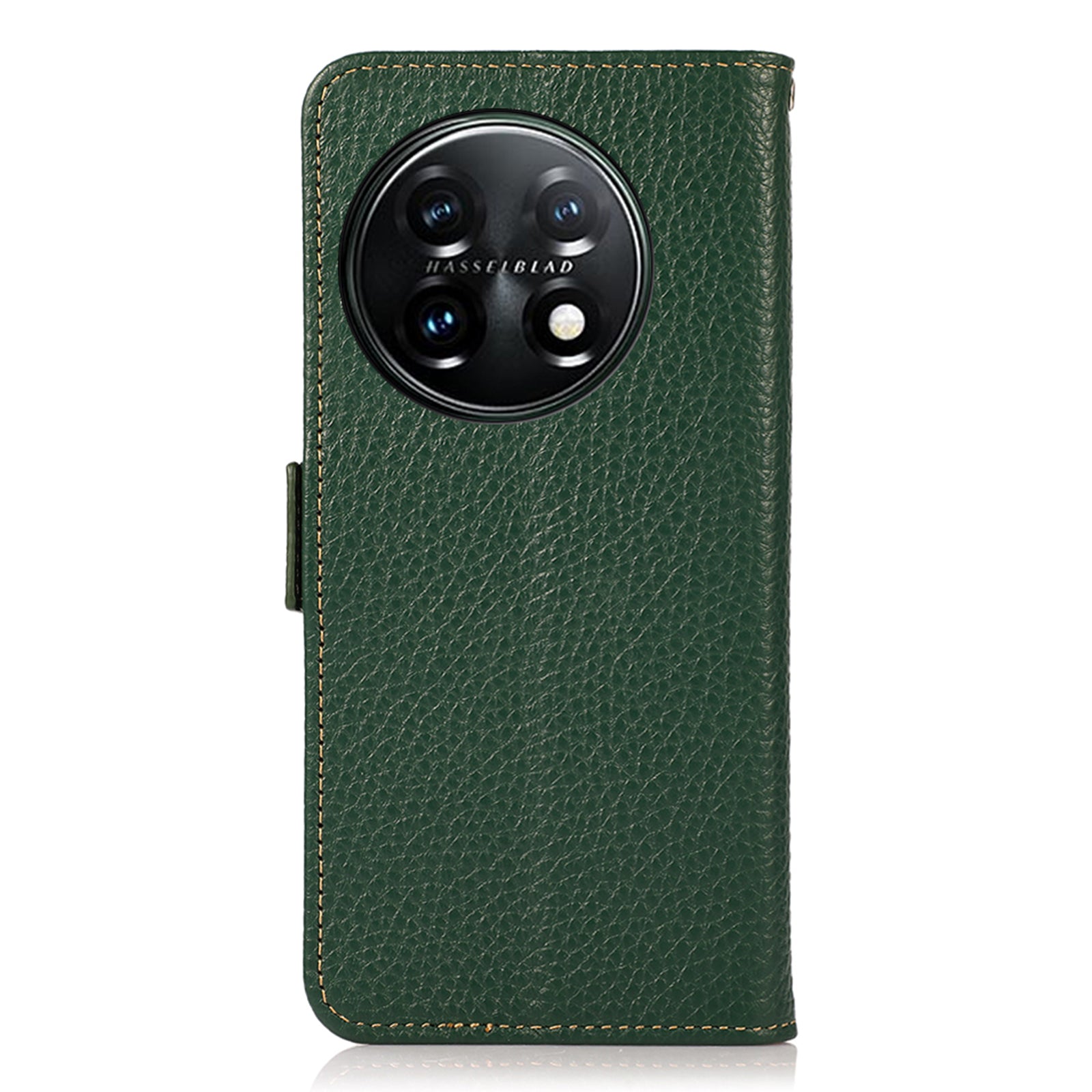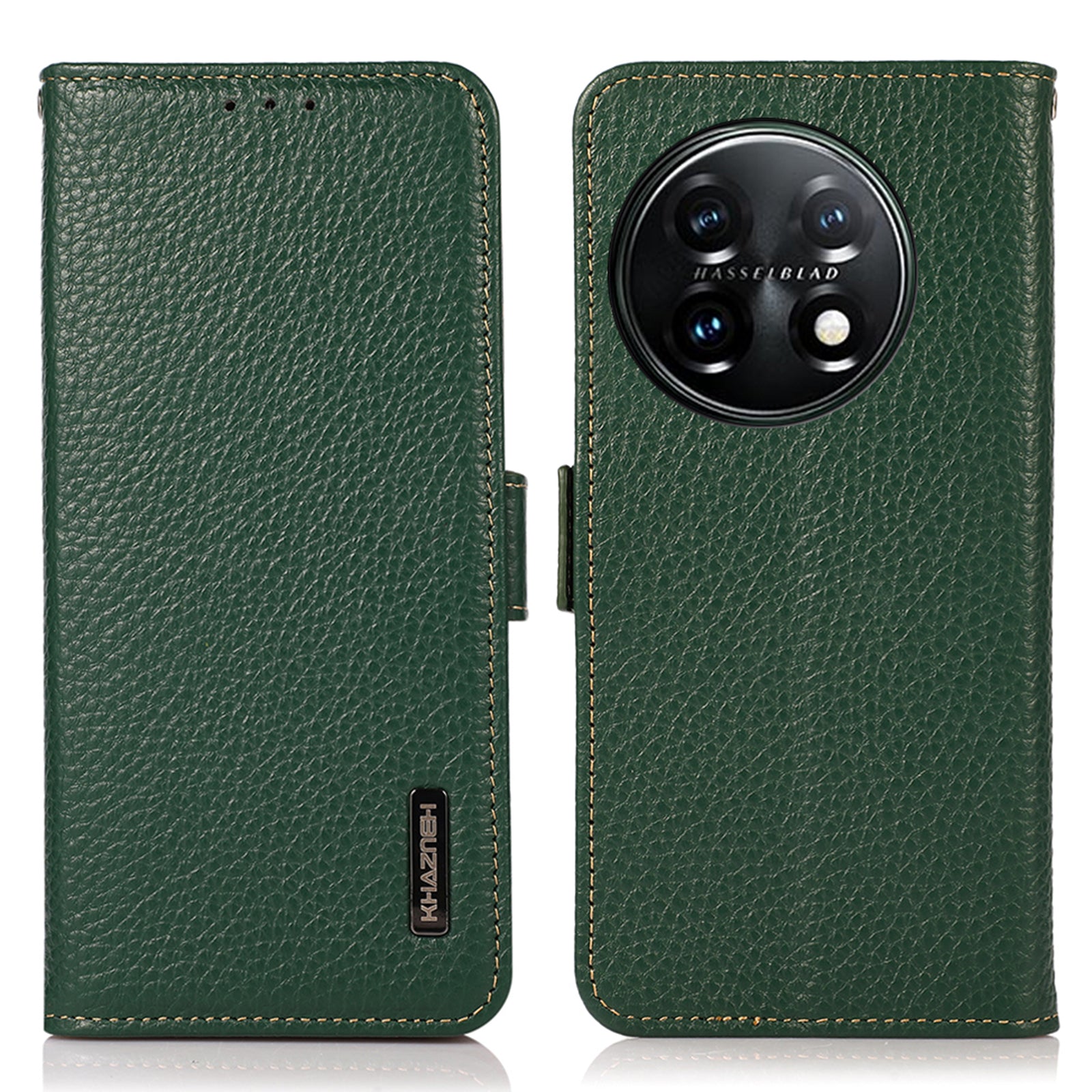 KHAZNEH Phone Case for OnePlus 11 5G RFID Blocking Stand Wallet Litchi Texture Genuine Leather Shockproof Flip Phone Cover - Green