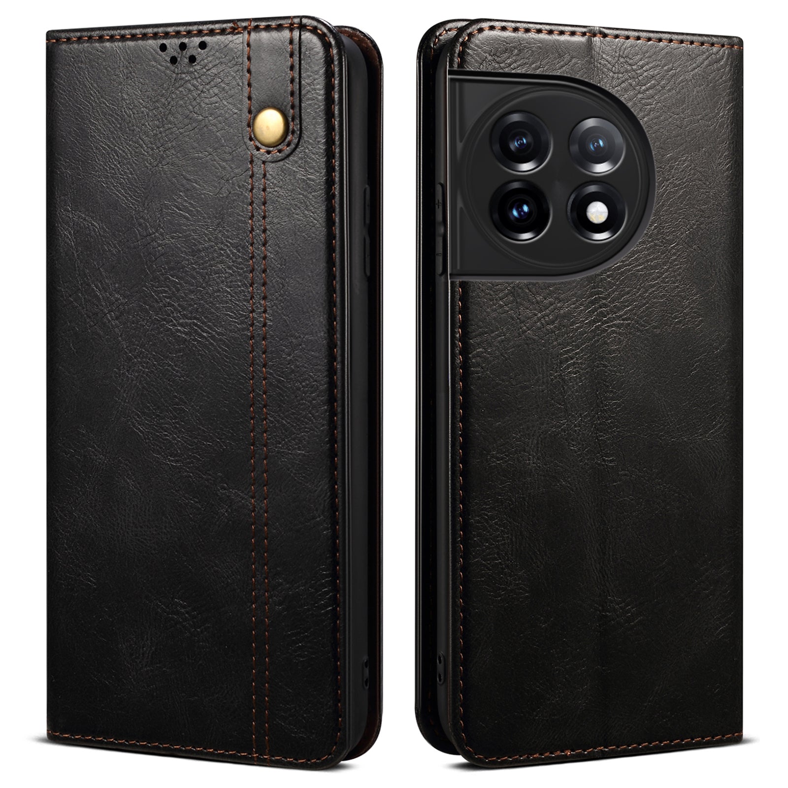 Phone Wallet Case for OnePlus Ace 2 5G / 11R 5G, Waxy Crazy Horse Texture PU Leather Phone Stand Cover - Black