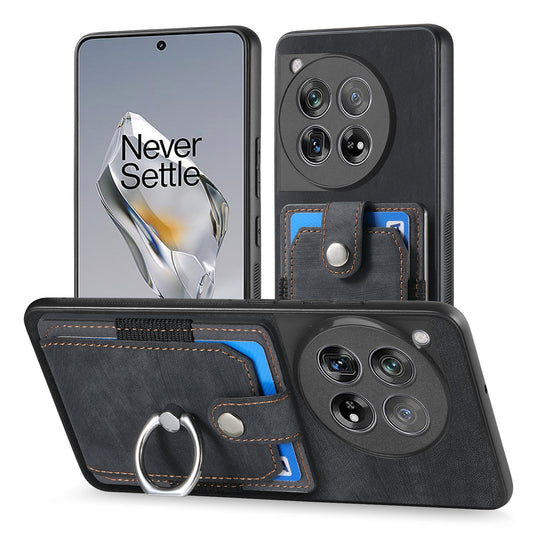 For OnePlus Ace 2 5G / 11R 5G Brass Button Decor Leather Phone Cover Stand Wallet Phone Case - Black