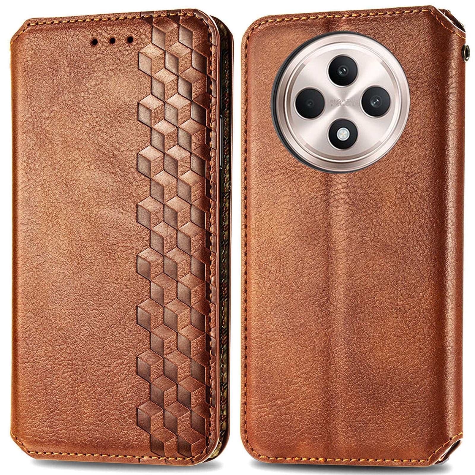 For Oppo F27 5G Case Rhombus Imprint PU Leather Wallet Phone Cover - Brown