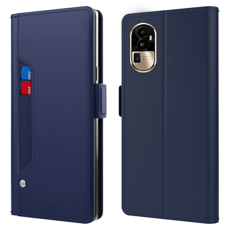 Uniqkart for Oppo Reno10 Pro+ 5G Lightweight PU Leather Phone Case Card Holder Mirror Phone Stand Cover - Blue