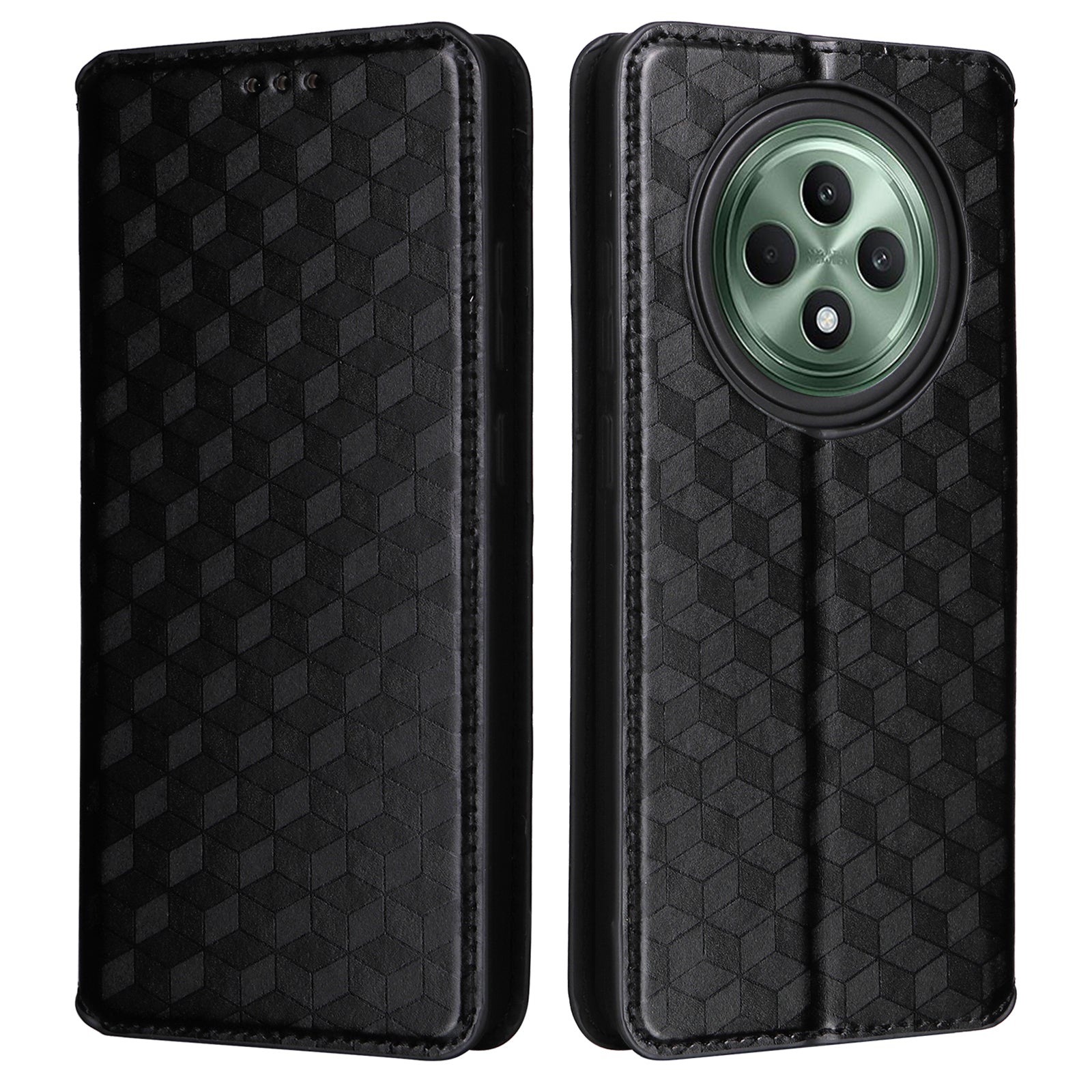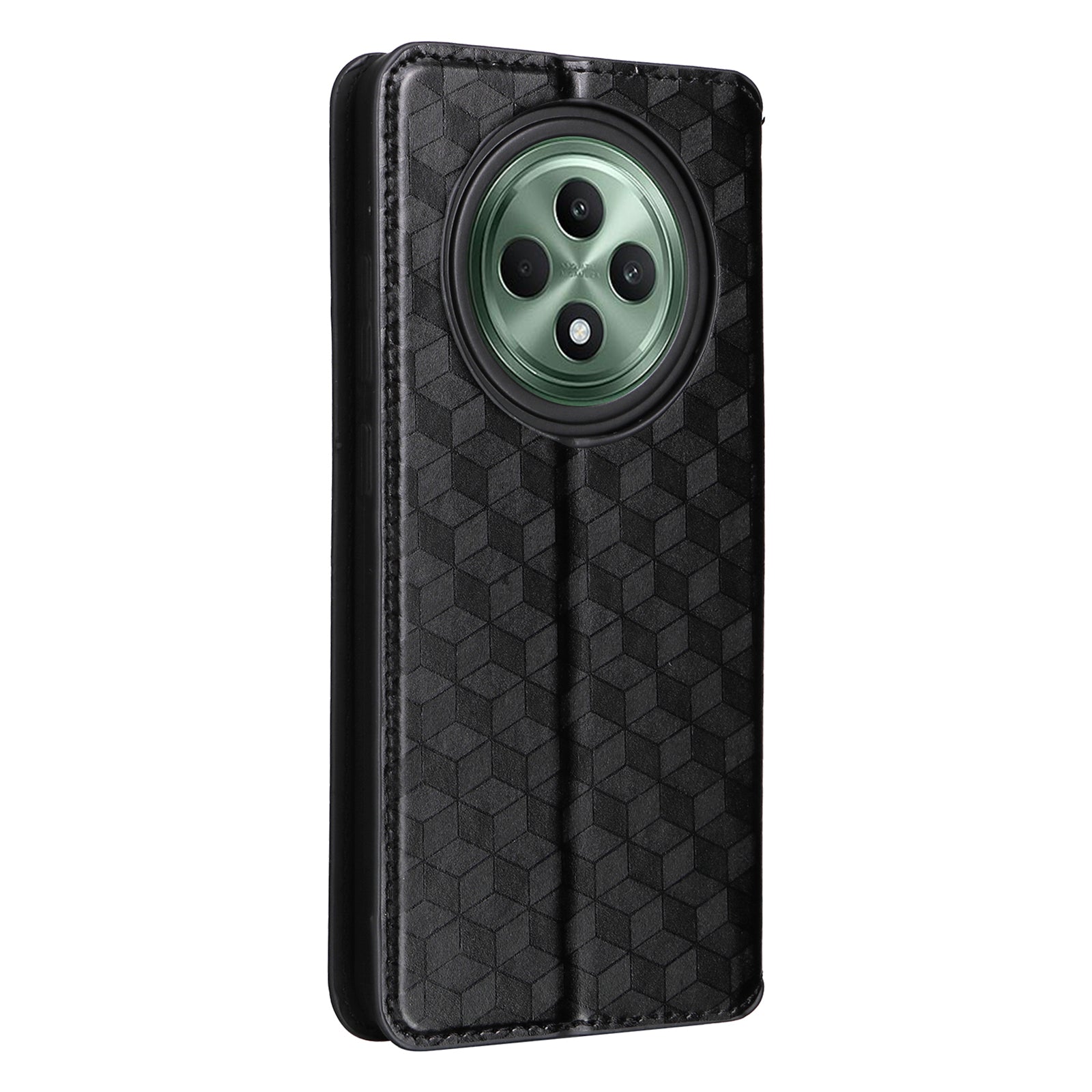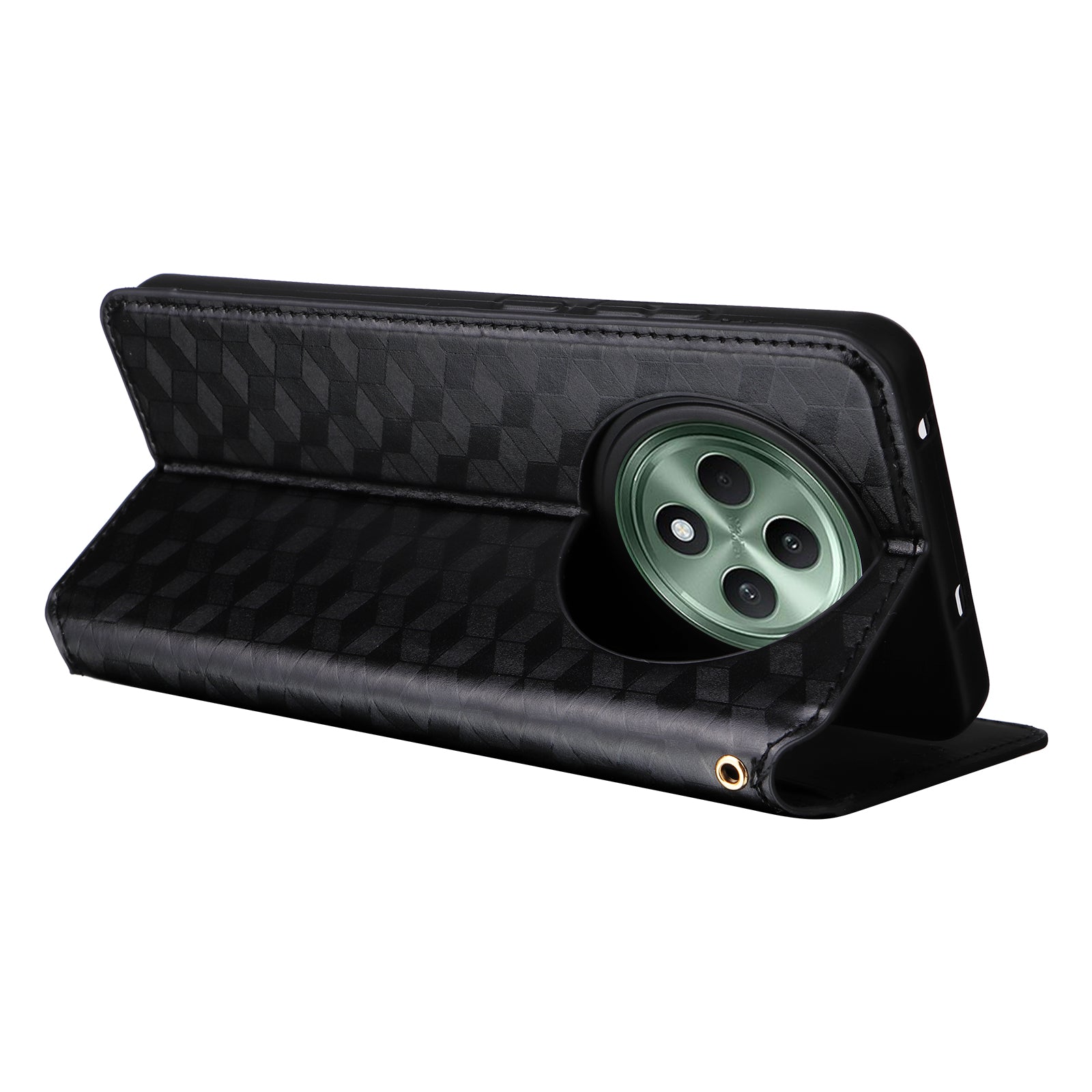 For Oppo Reno12 F 5G / Oppo F27 5G Case Leather Wallet Phone Cover Rhombus Imprinted - Black
