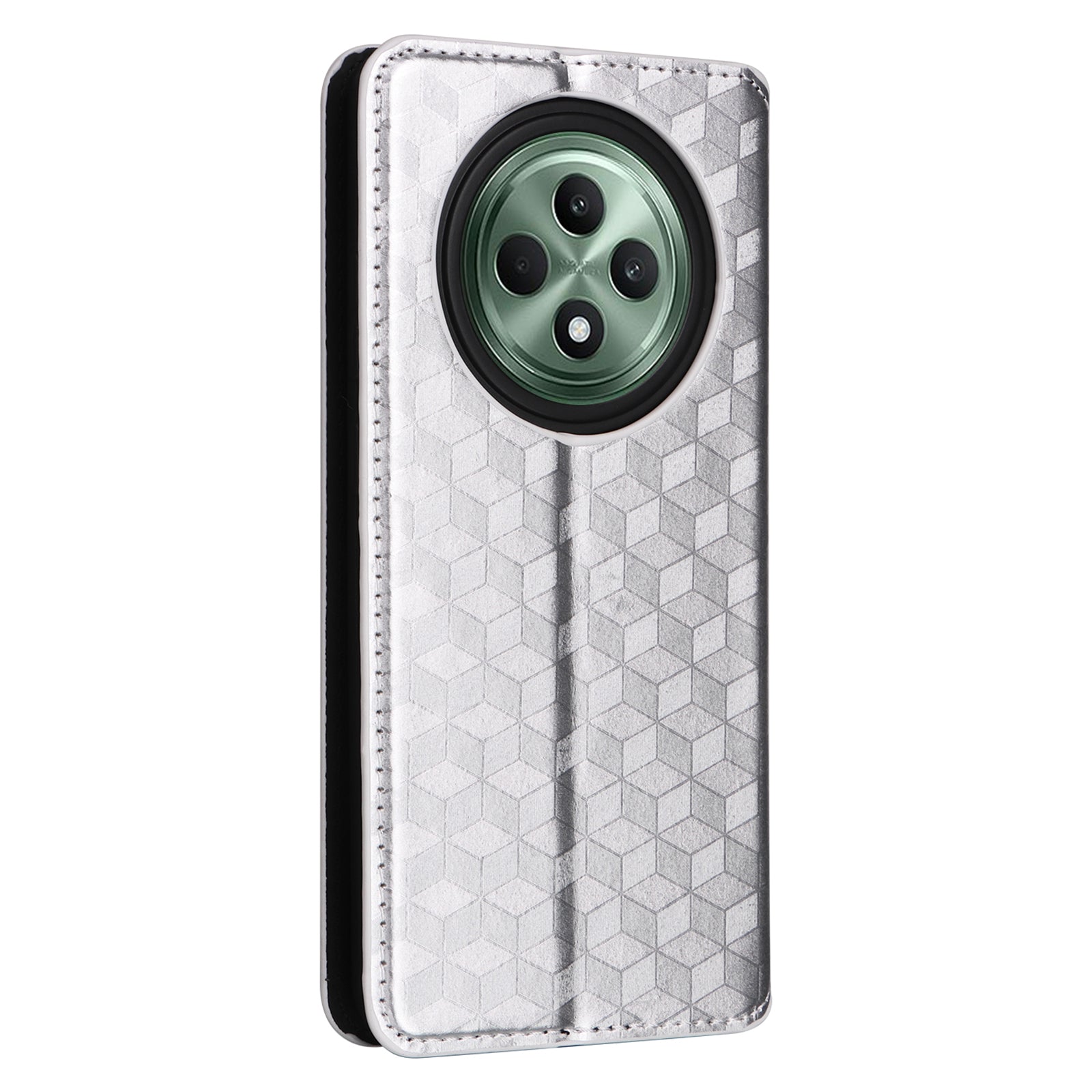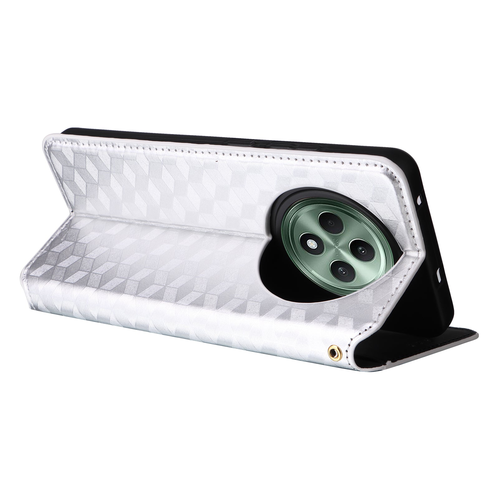 For Oppo Reno12 F 5G / Oppo F27 5G Case Leather Wallet Phone Cover Rhombus Imprinted - Silver