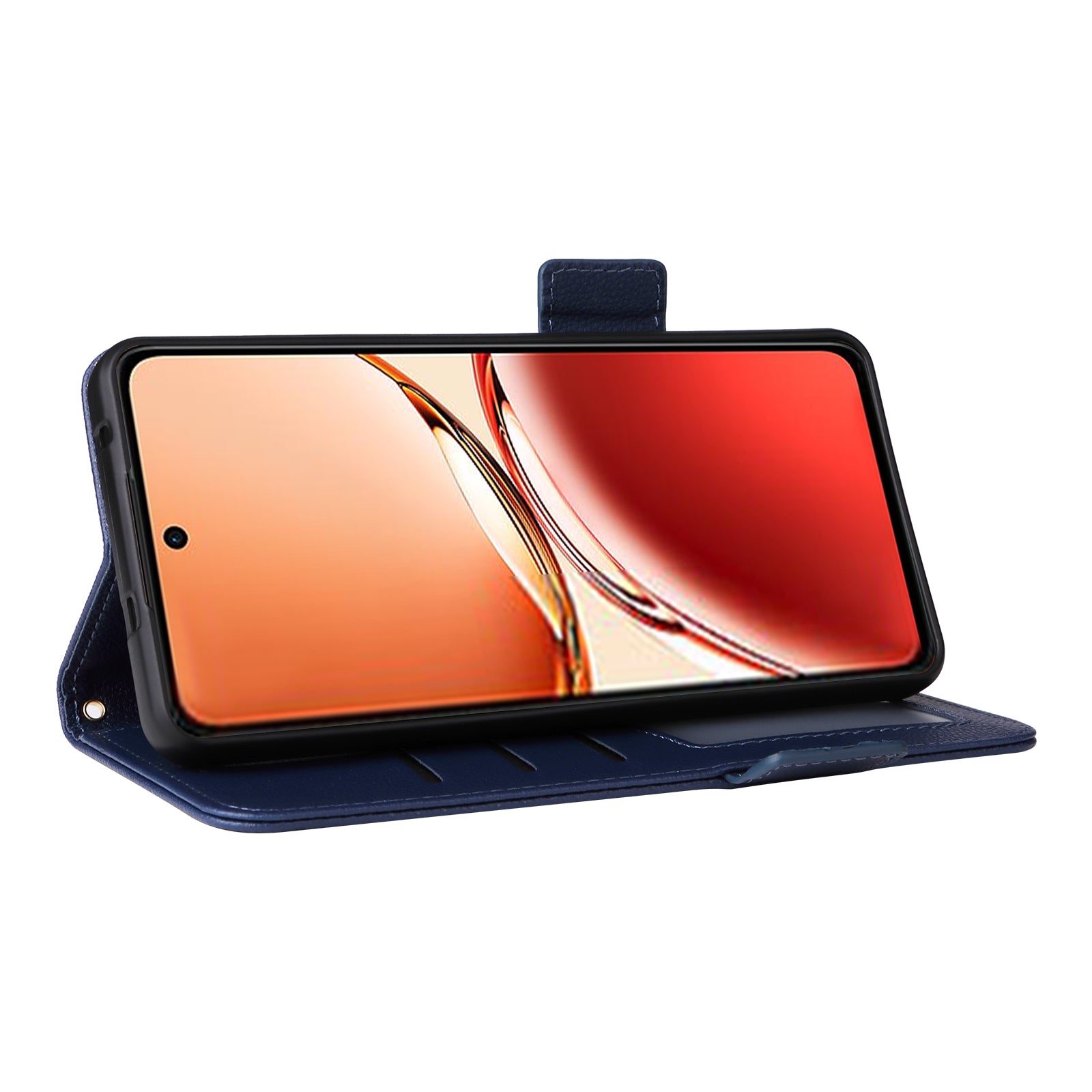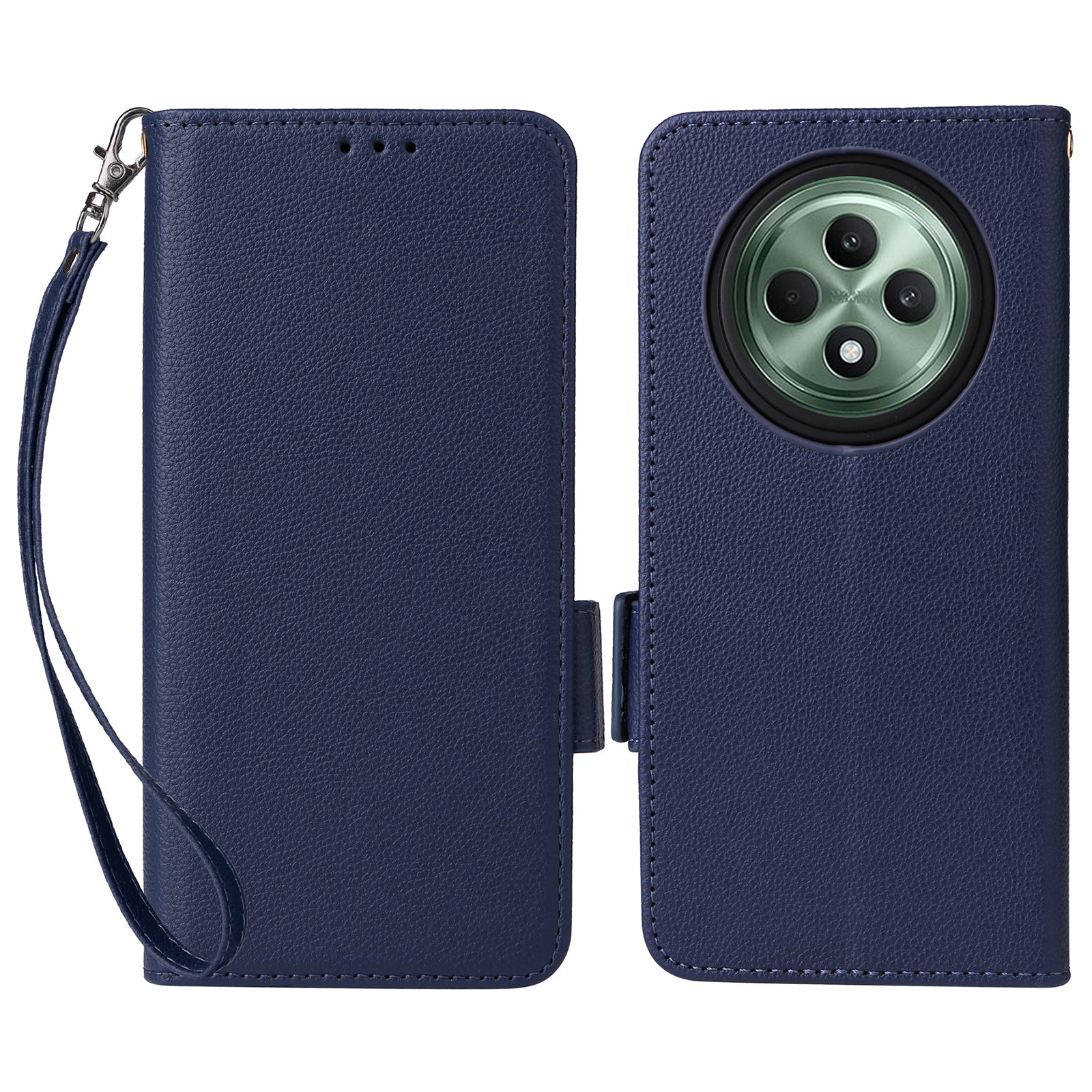For Oppo Reno12 F 5G / Oppo F27 5G Case with Hand Strap Litchi Texture Leather Phone Cover - Dark Blue