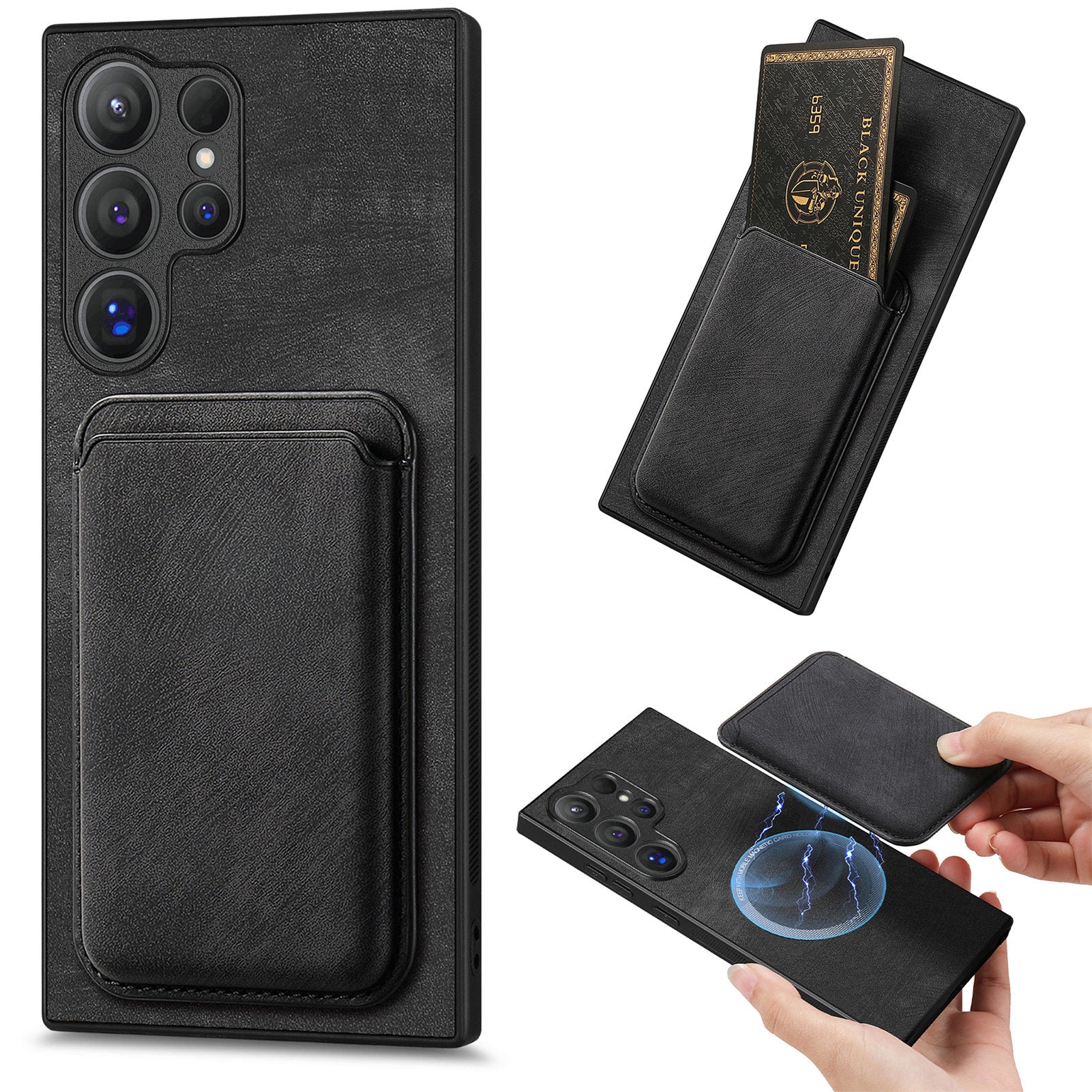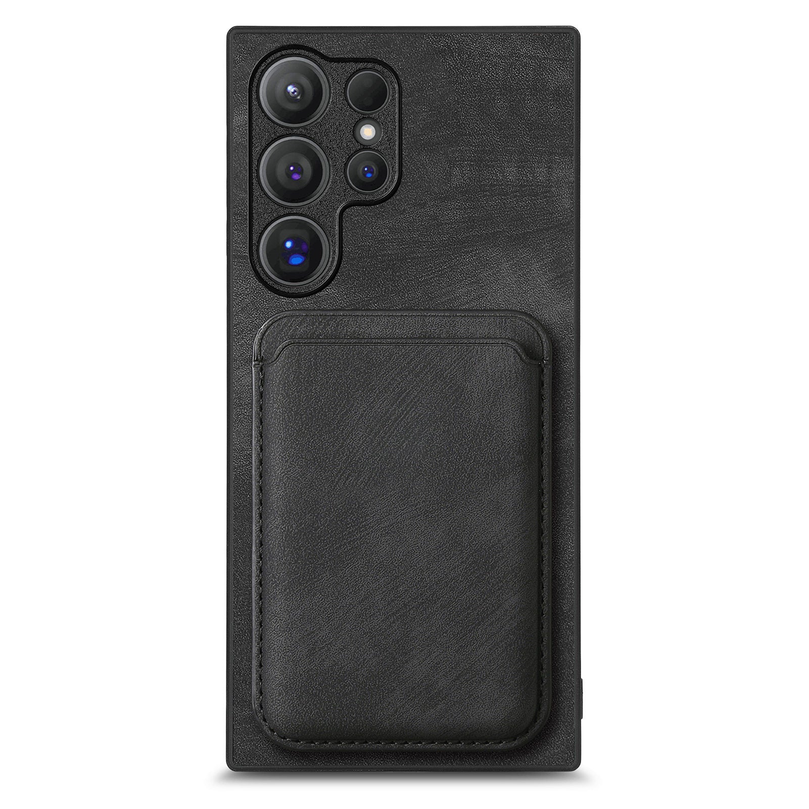 D12 For Samsung Galaxy S24 Ultra Retro Texture Detachable Magnetic Card Case Phone Cover - Black
