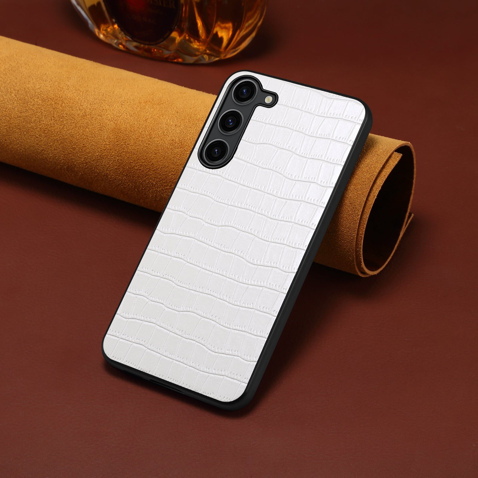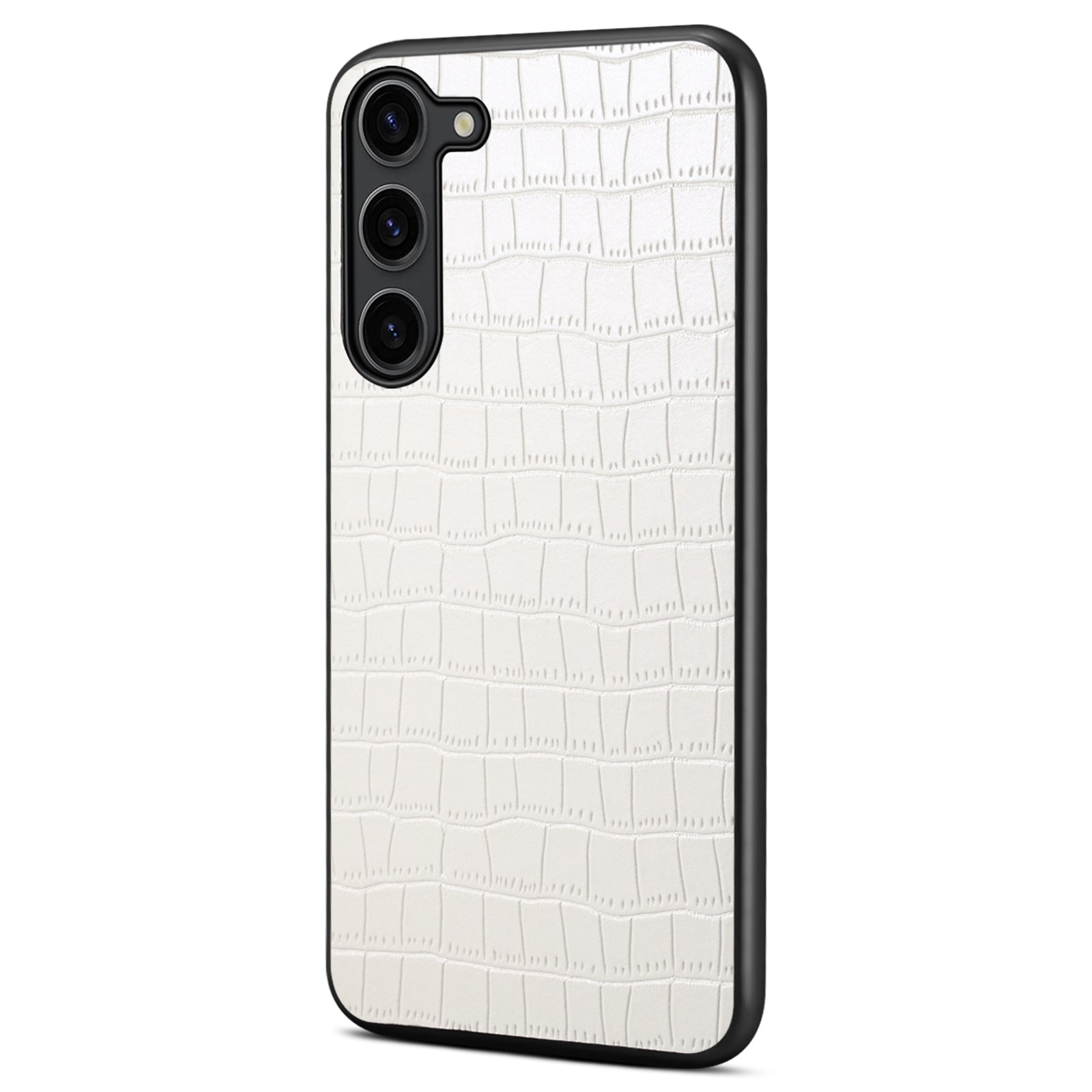 For Samsung Galaxy S24+ Case Crocodile Textured PU+PC+TPU Fall Proof Phone Cover - White