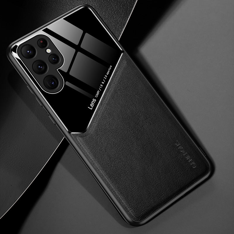For Samsung Galaxy S24 Ultra Case Magnetic Car Mount Back Guard PU+TPU+PC Cover - Black