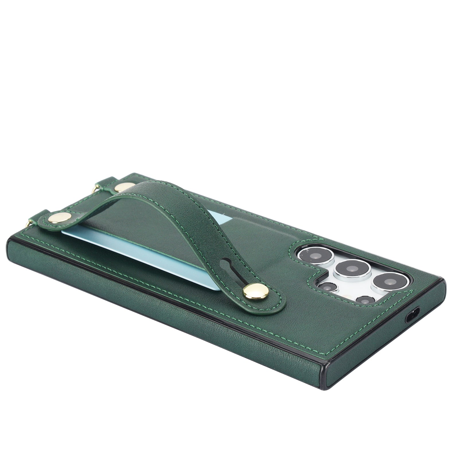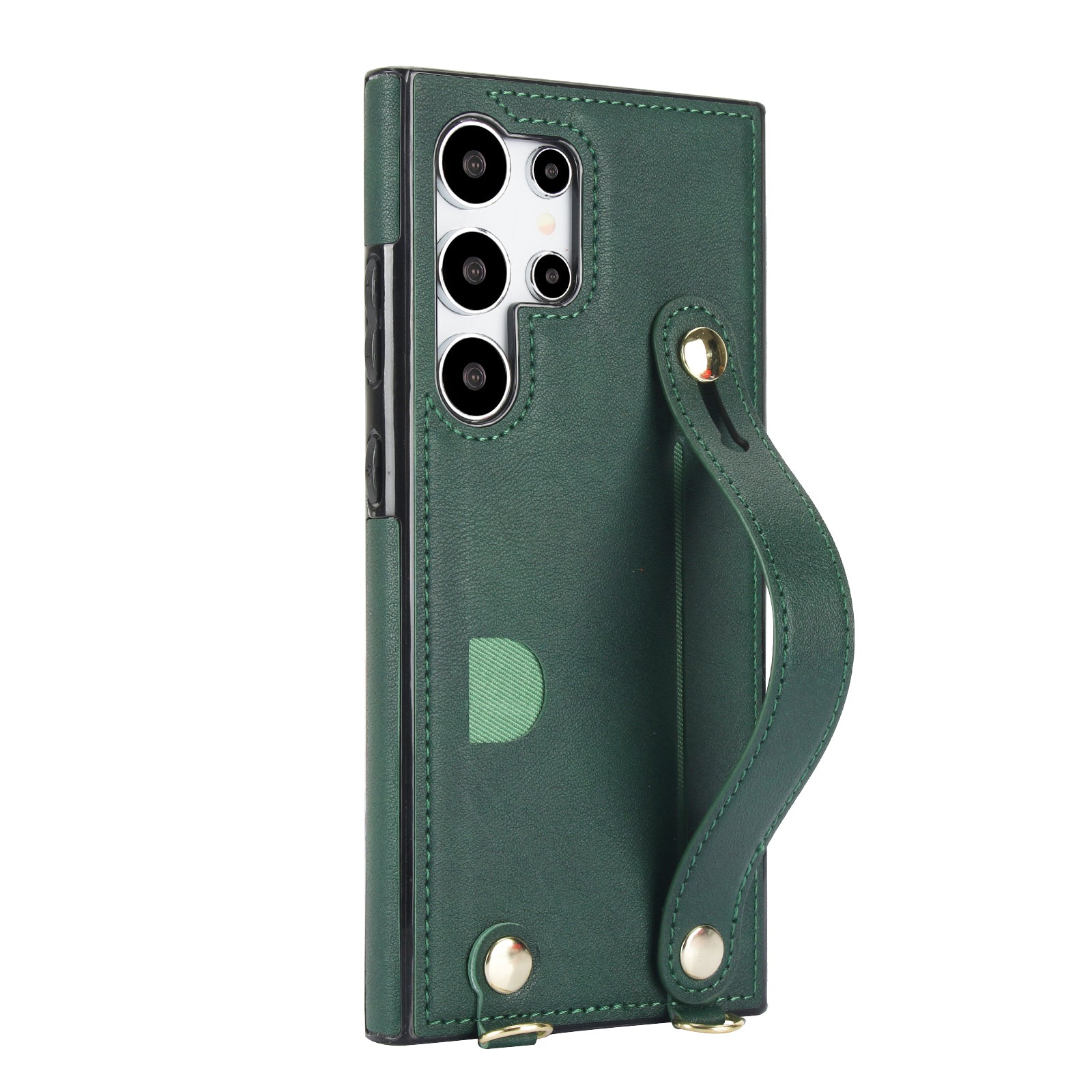 For Samsung Galaxy S24 Ultra Cell Phone Case Crossbody PU Leather+TPU Strap Kickstand Cover - Green