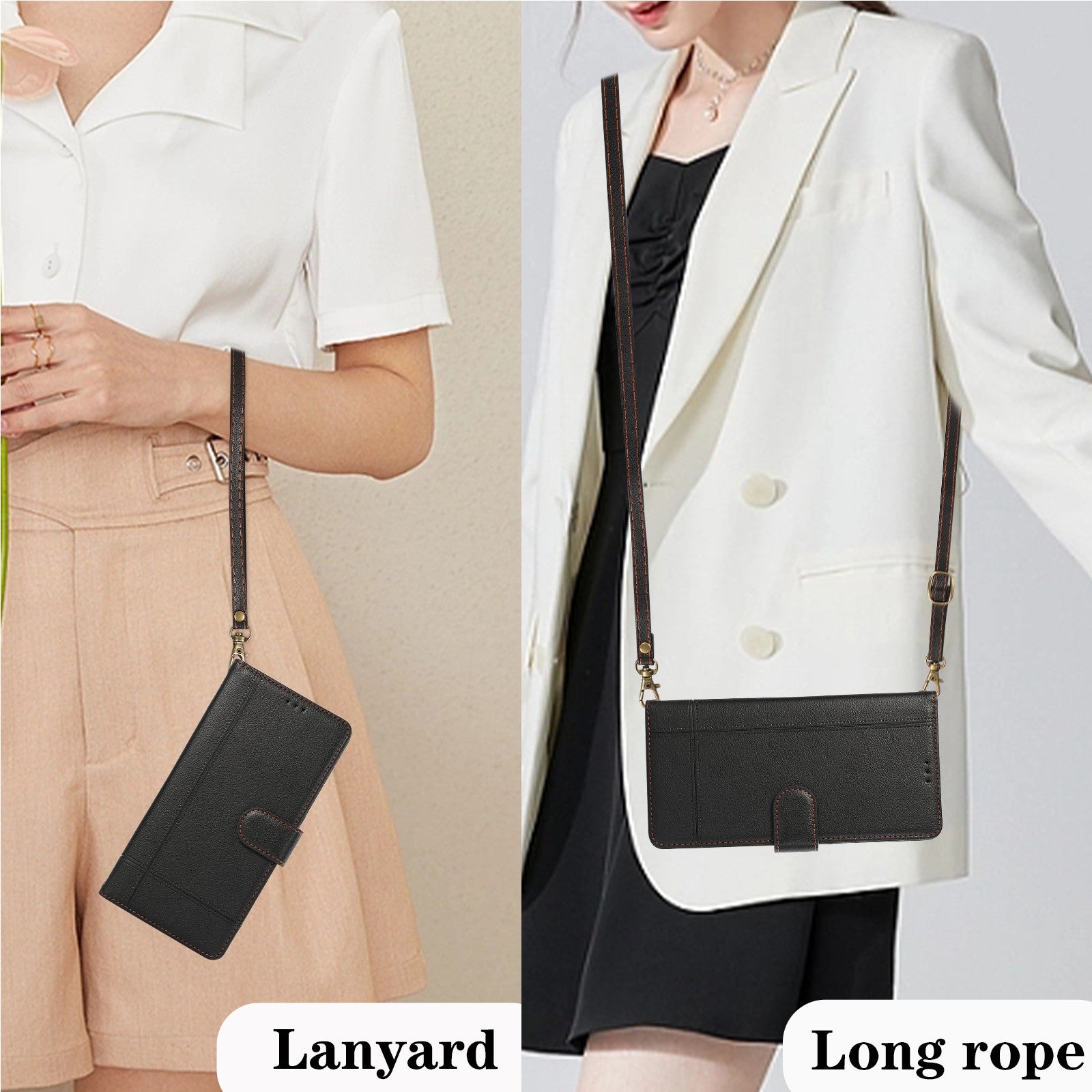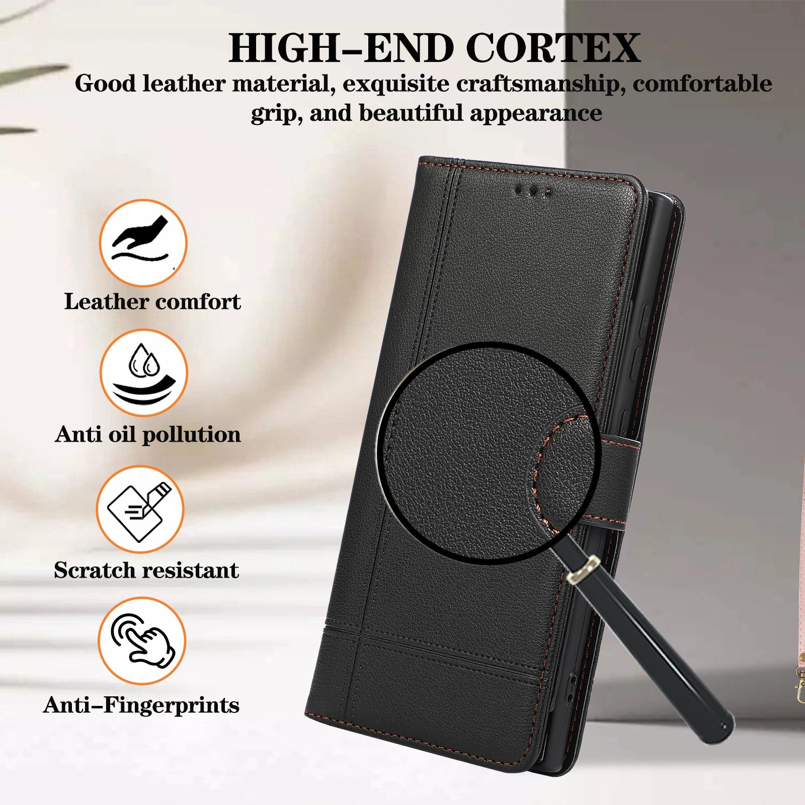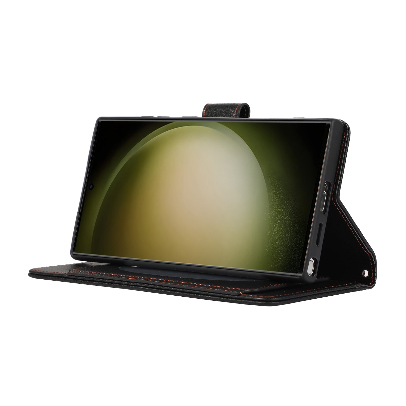 For Samsung Galaxy S24 Ultra Cell Phone Cases Folio Flip Leather Protection Cover with Mirror - Black