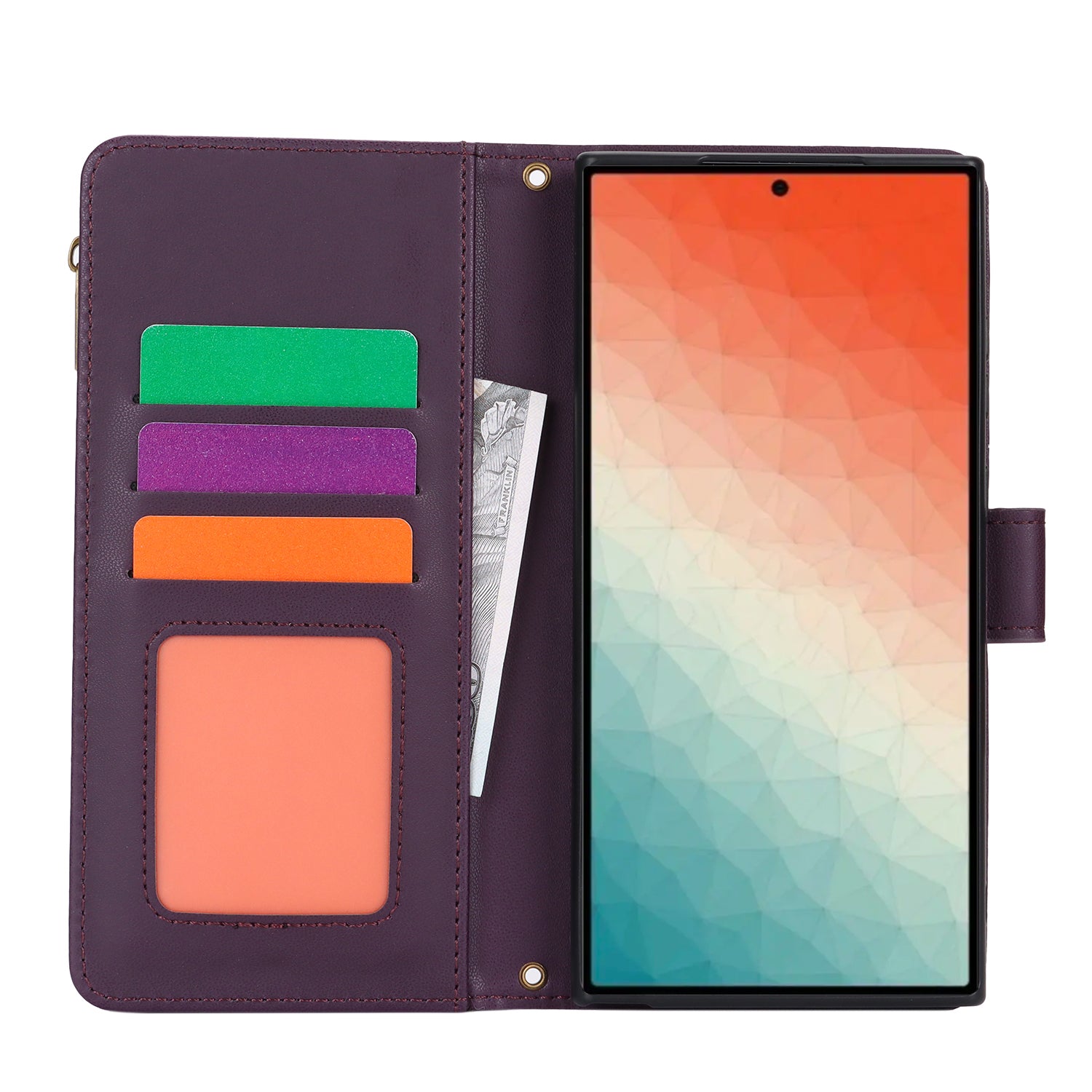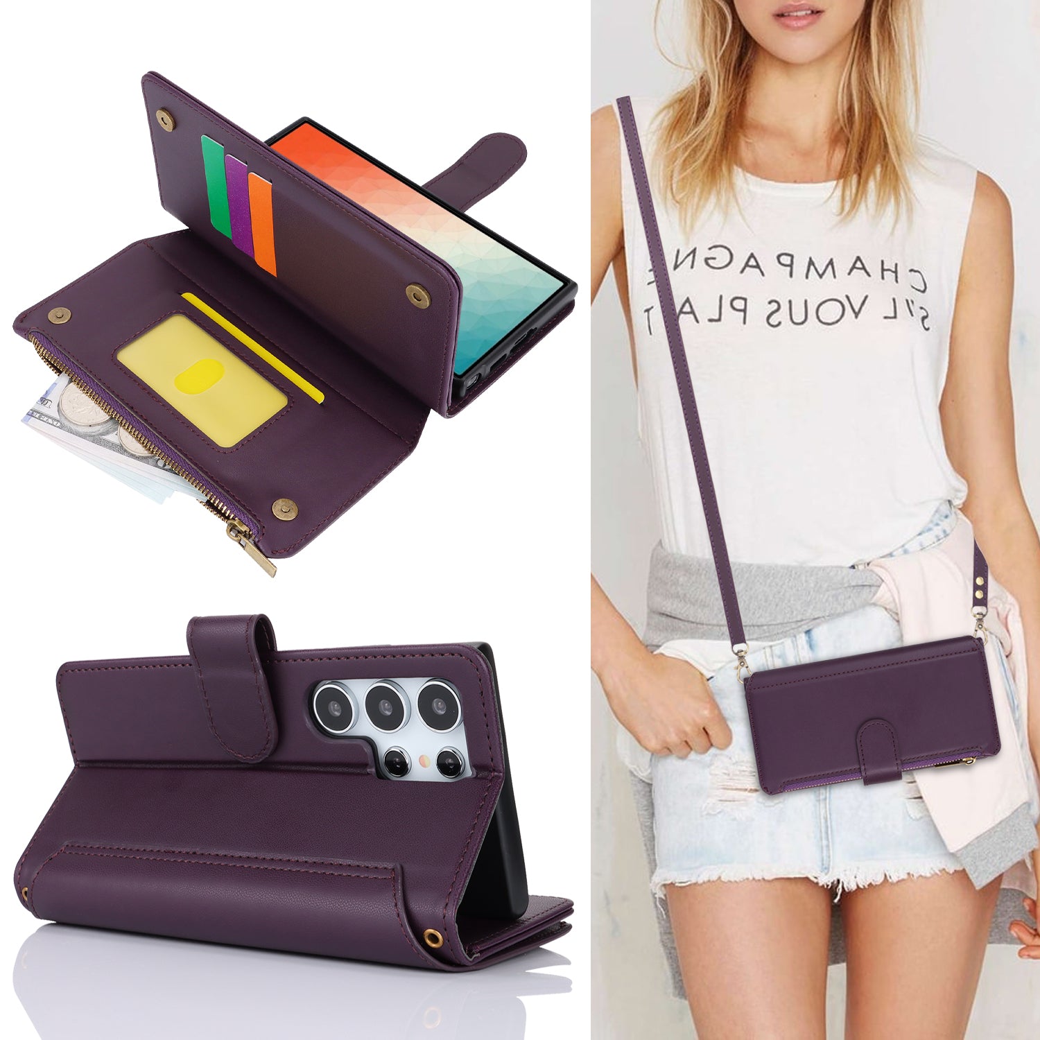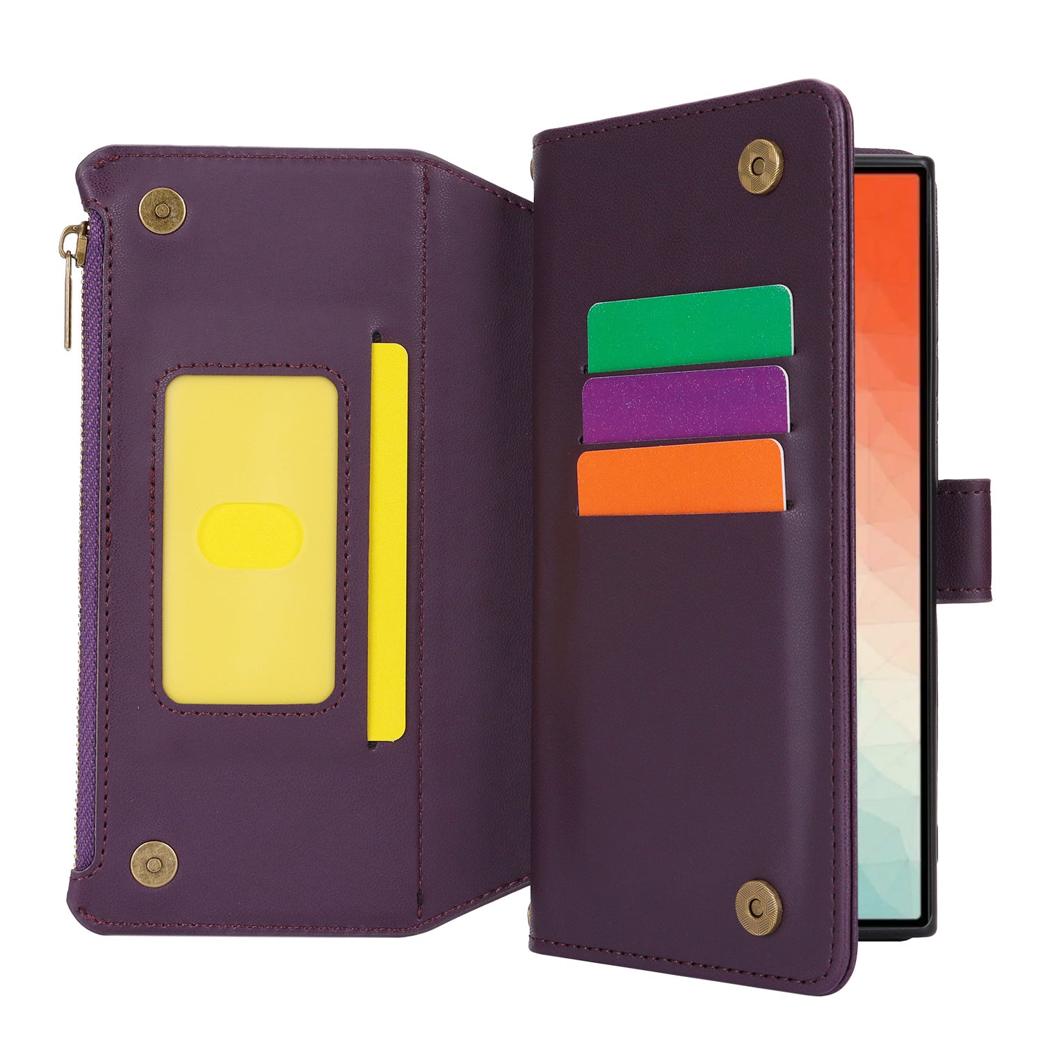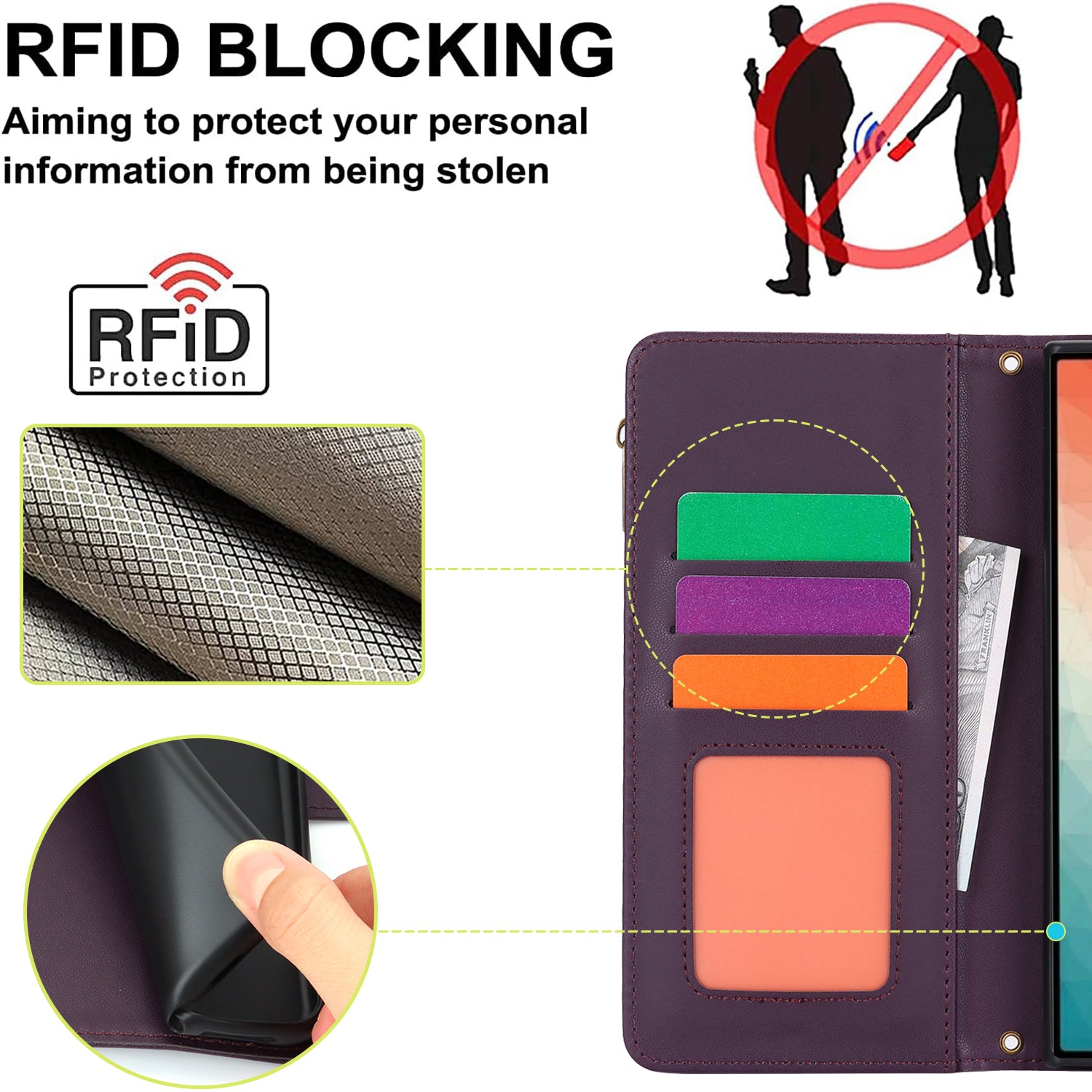 For Samsung Galaxy S24 Ultra Cell Phone Stand Case RFID Blocking Leather Flip Cover - Dark Purple