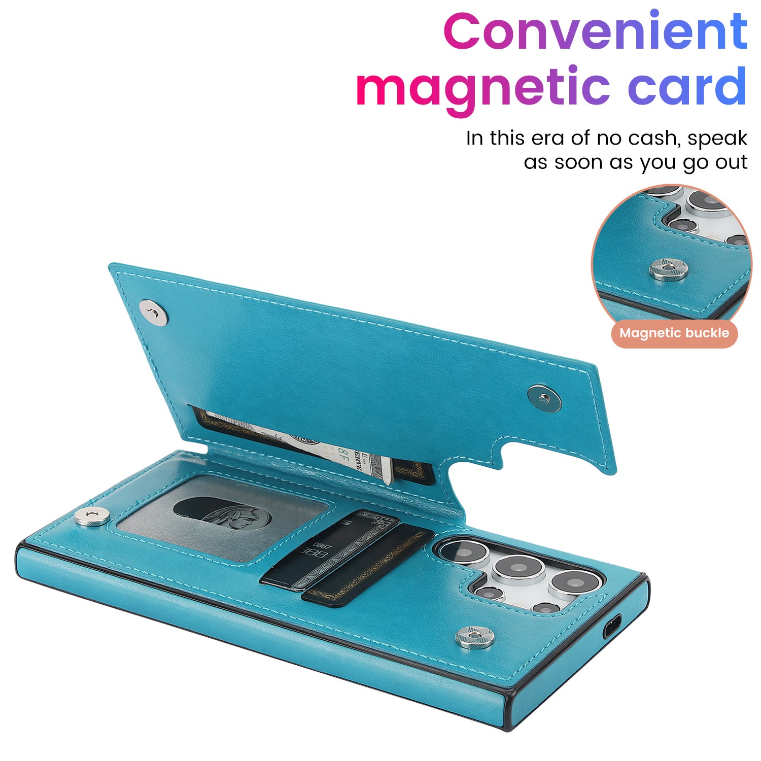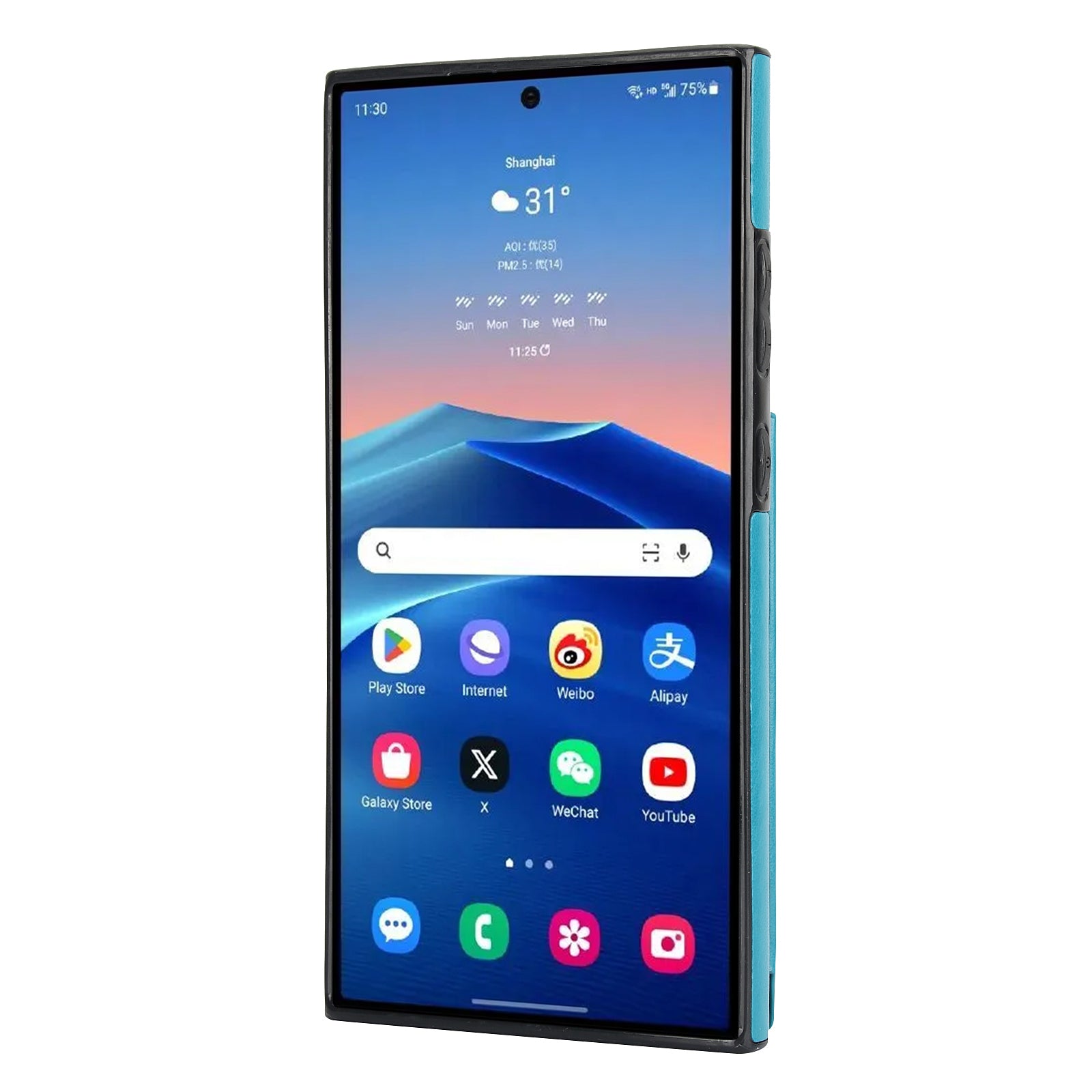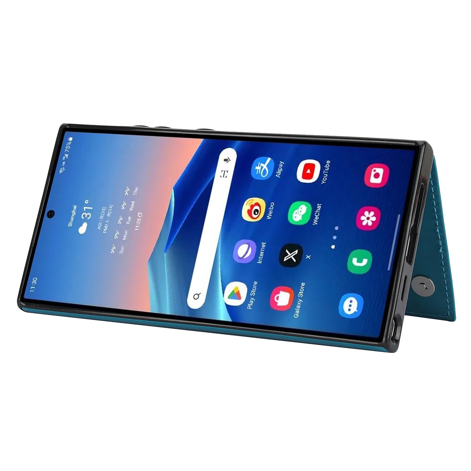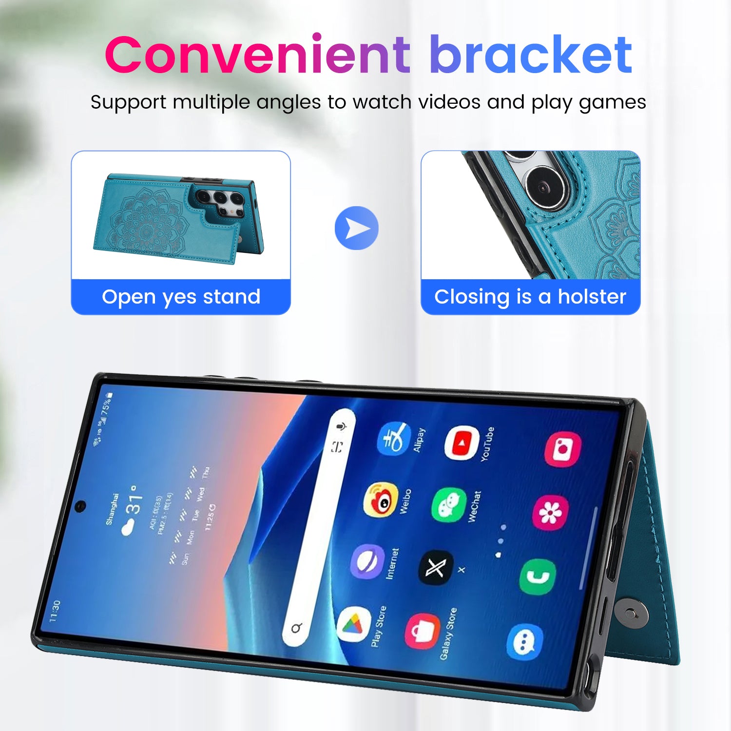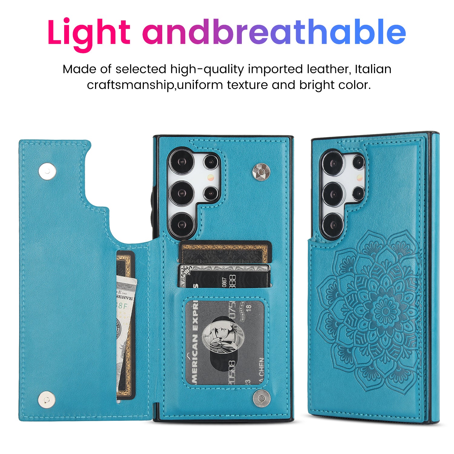 For Samsung Galaxy S24 Ultra PU Leather Case Imprinted Mandala Flower Kickstand Phone Cover - Dark Blue
