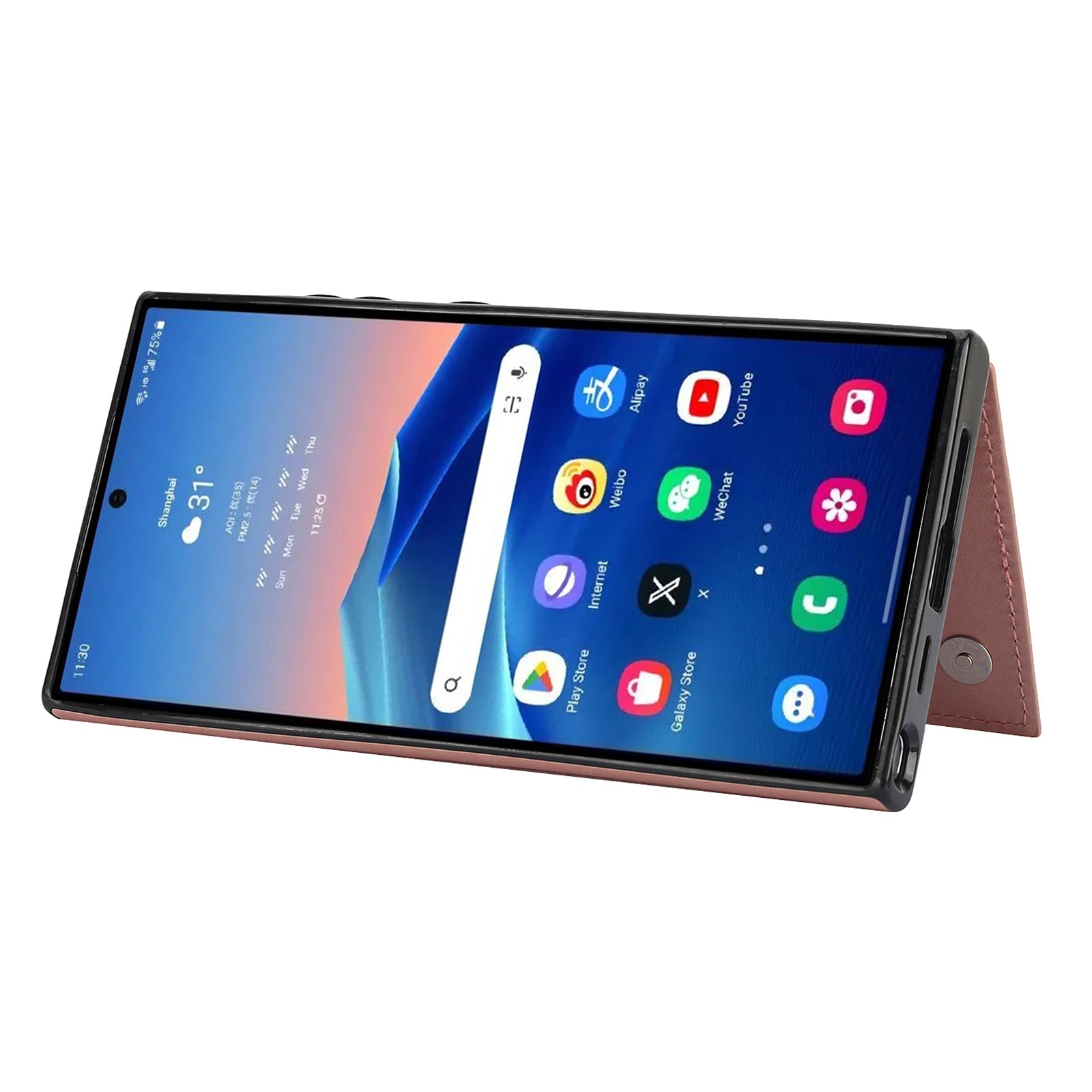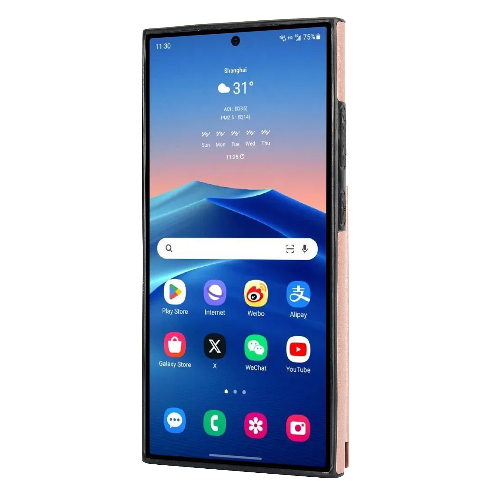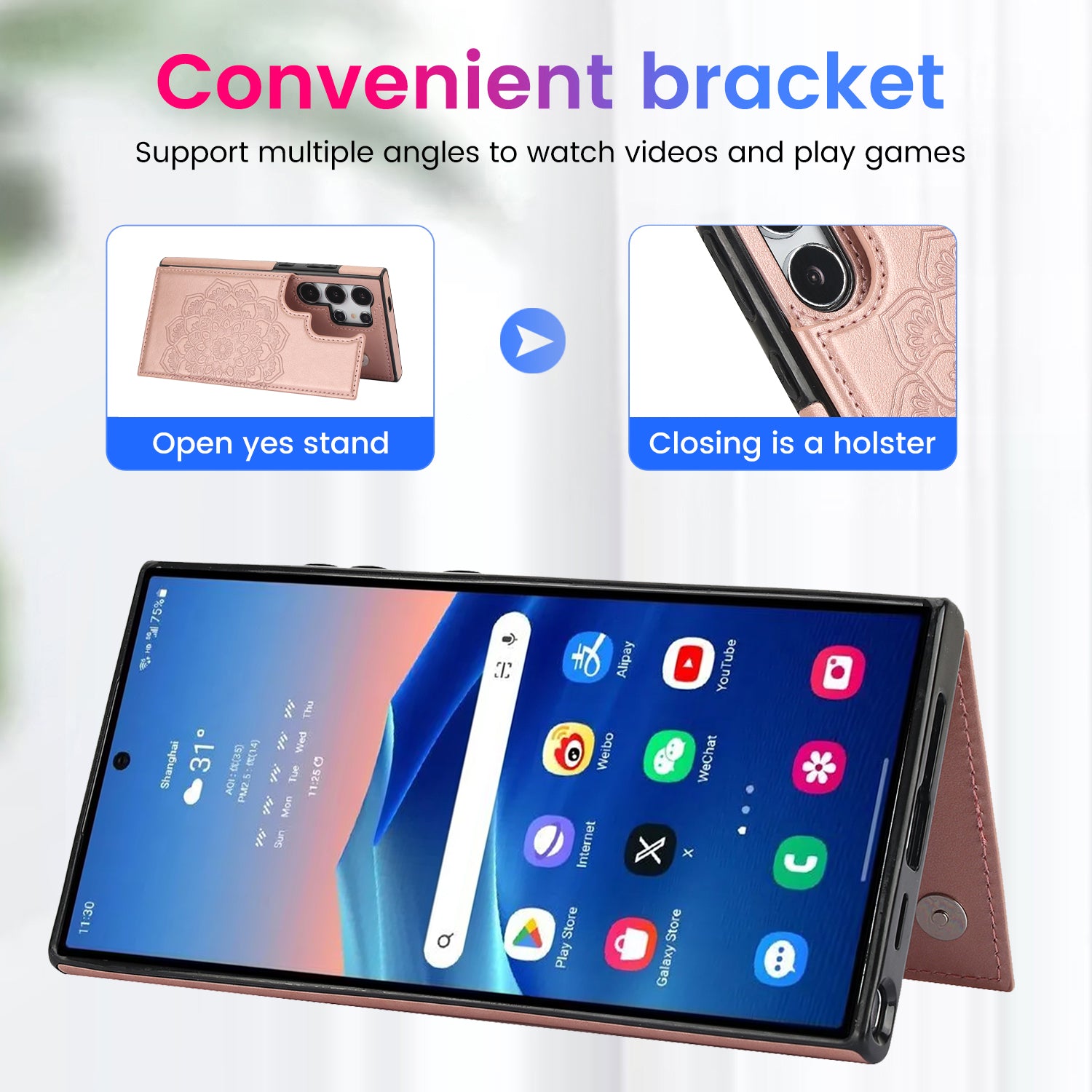 For Samsung Galaxy S24 Ultra PU Leather Case Imprinted Mandala Flower Kickstand Phone Cover - Rose Gold