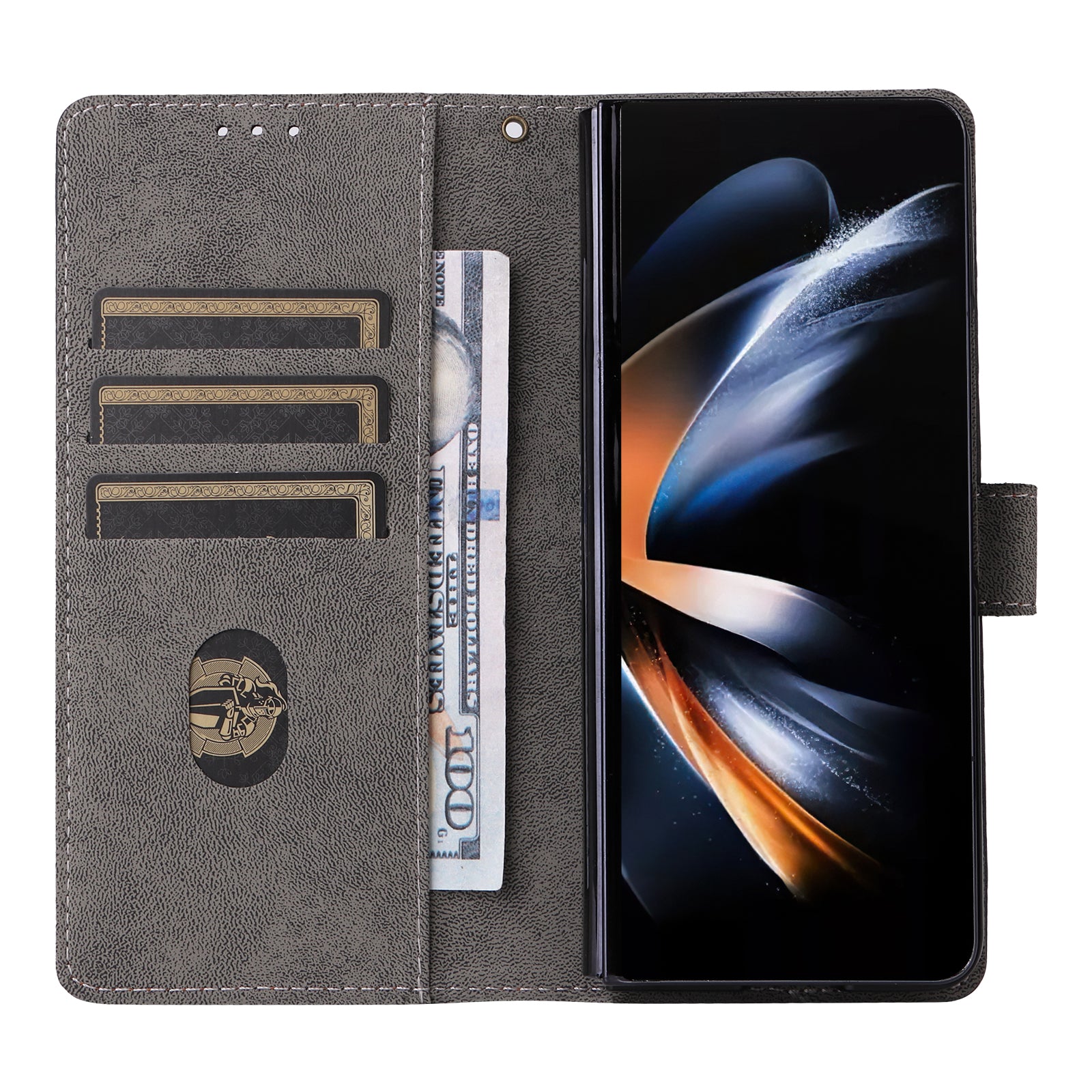For Samsung Galaxy Z Fold6 5G Case RFID Blocking Leather Phone Cover Viewing Stand - Brown