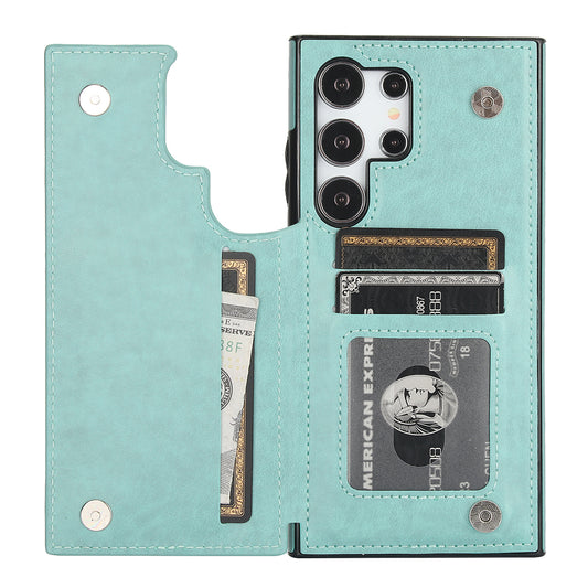 For Samsung Galaxy S24 Ultra Cell Phone Case Electroplating Leather+TPU Cover with Wristband - Green
