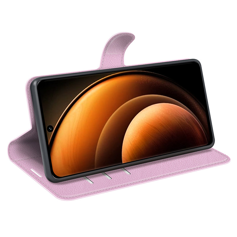 For vivo X100 5G Cell Phone Case Litchi Texture Shockproof Leather Stand Cover - Pink
