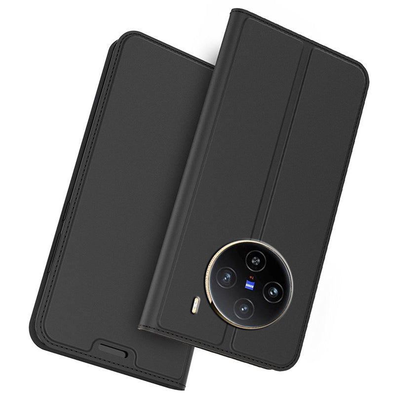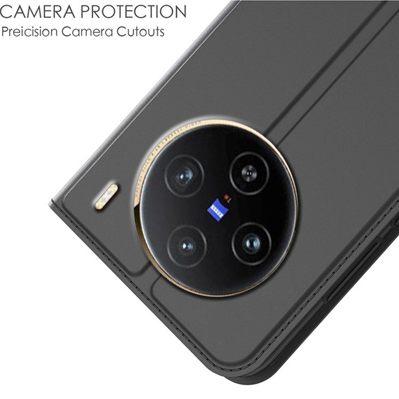 For vivo X100 5G Leather Phone Case Magnetic Phone Stand Cover - Black