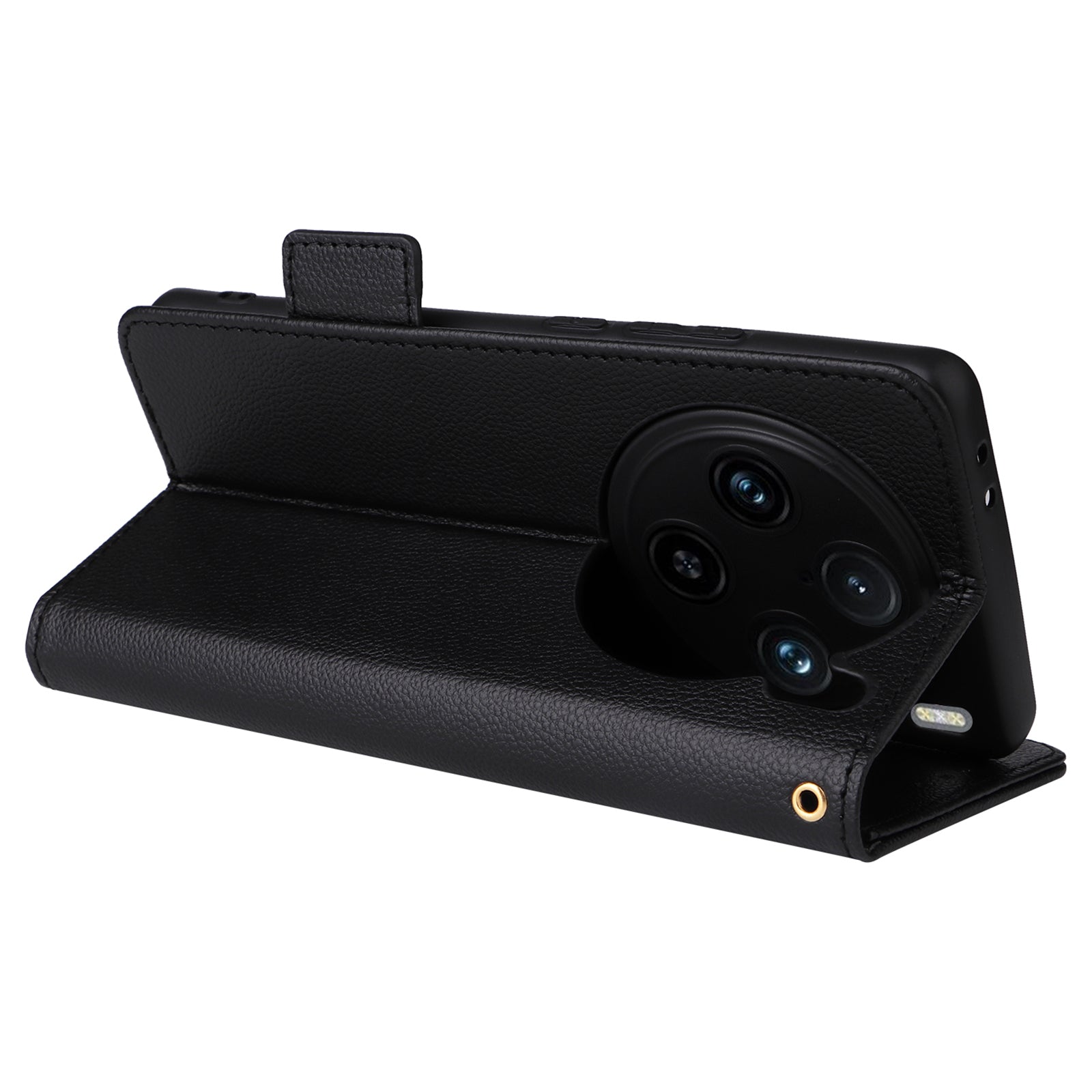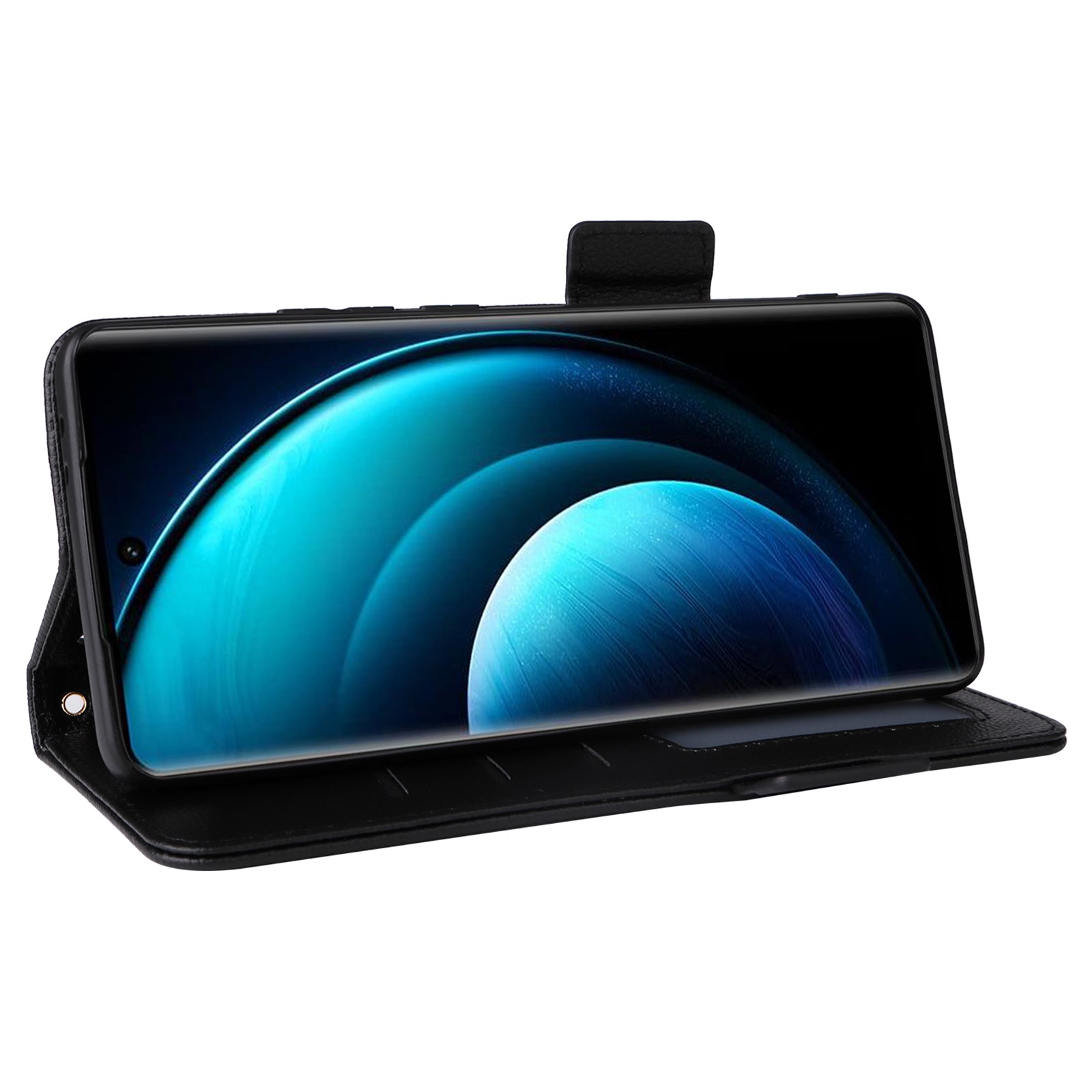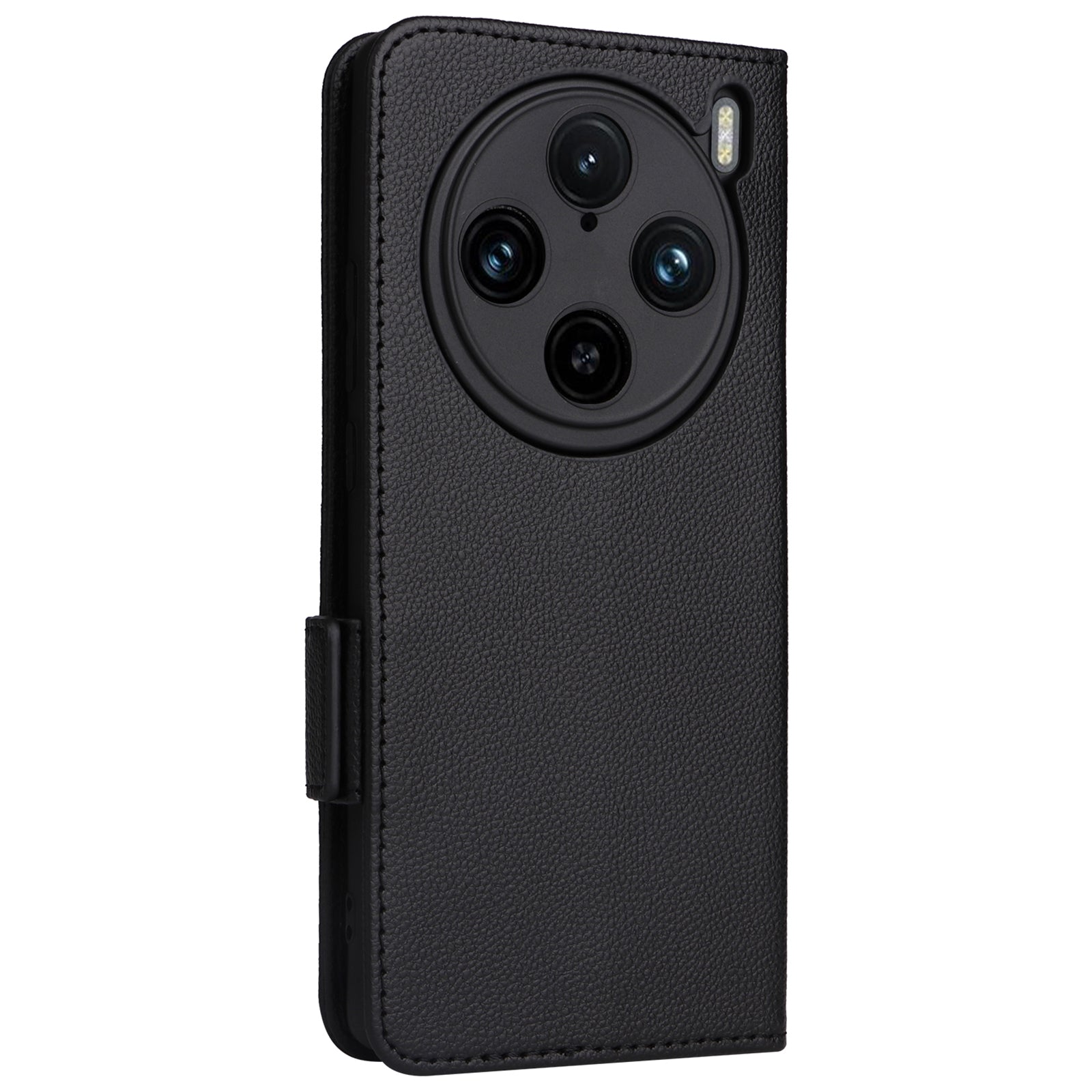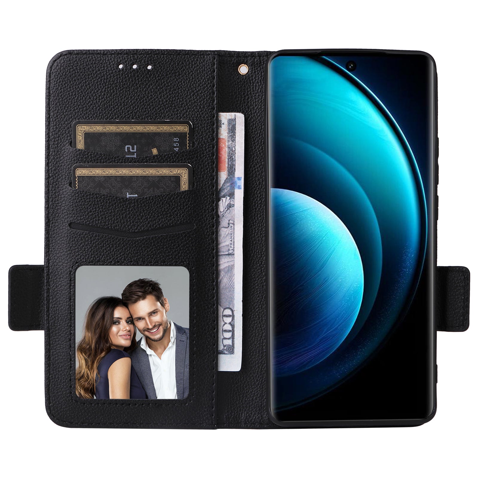 For vivo X100 Pro 5G Case Card Slots Shockproof Phone Cover with Litchi Texture - Black