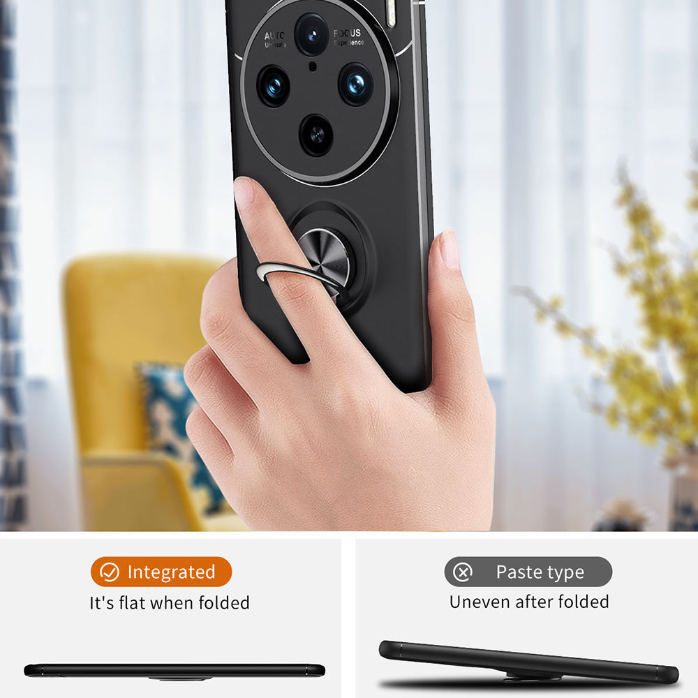For vivo X100 Pro 5G Case Flexible TPU Phone Protective Cover with Ring Kickstand - Black