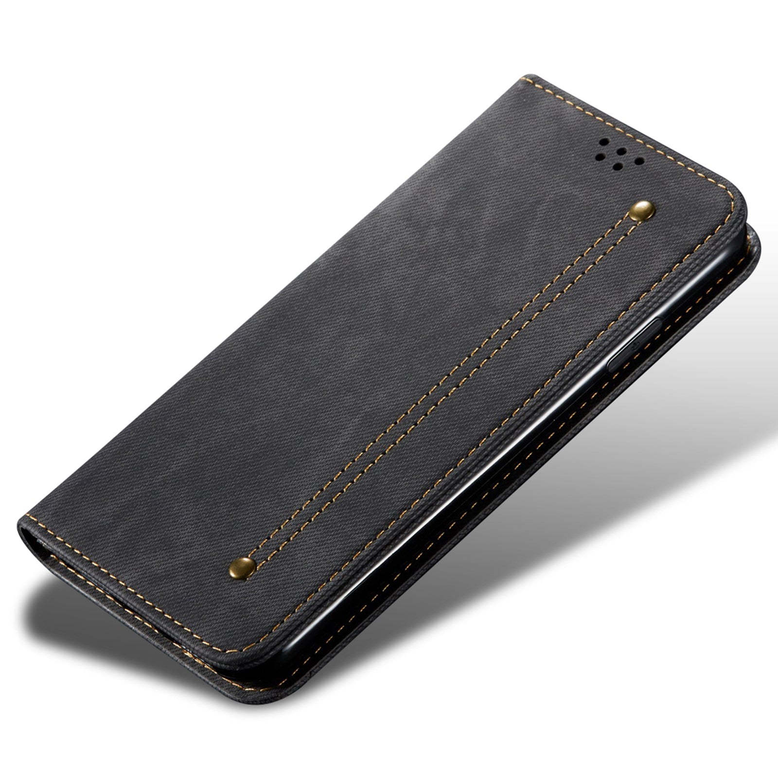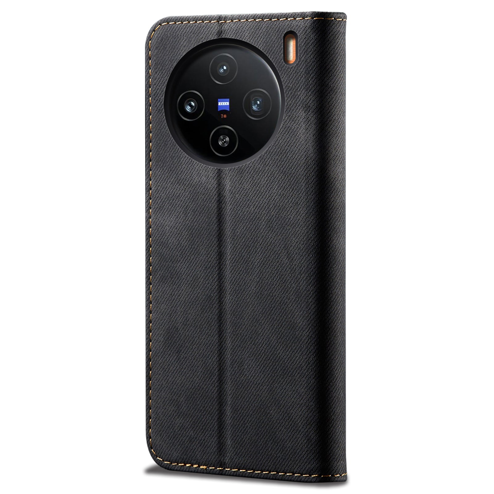 For vivo X100 Pro 5G Cell Phone Case Jeans Cloth Texture Wallet Anti-fall Leather Cover - Black