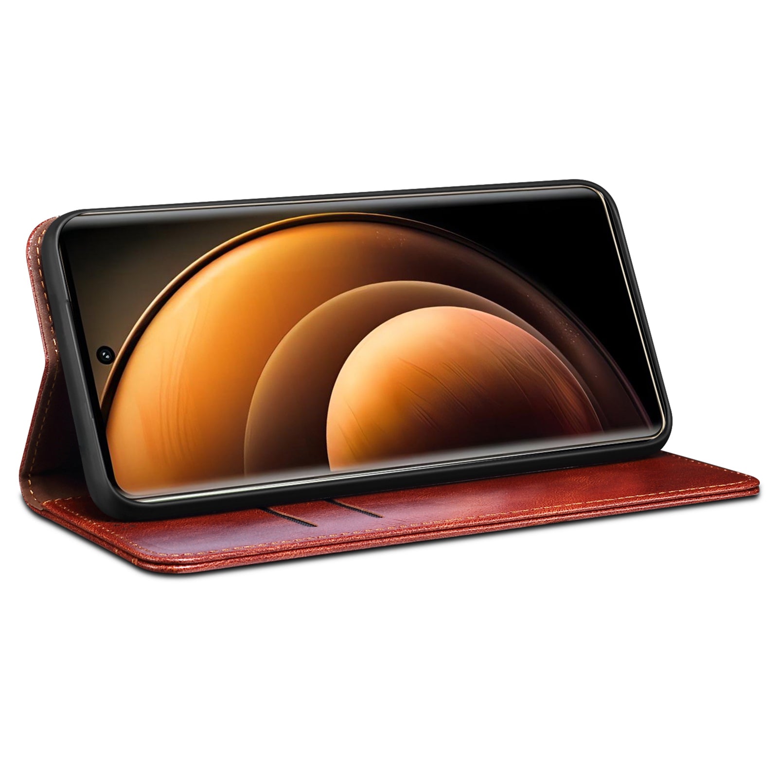 For vivo X100 Pro 5G Cell Phone Case Magnetic Closing Leather Stand Wallet Cover - Brown