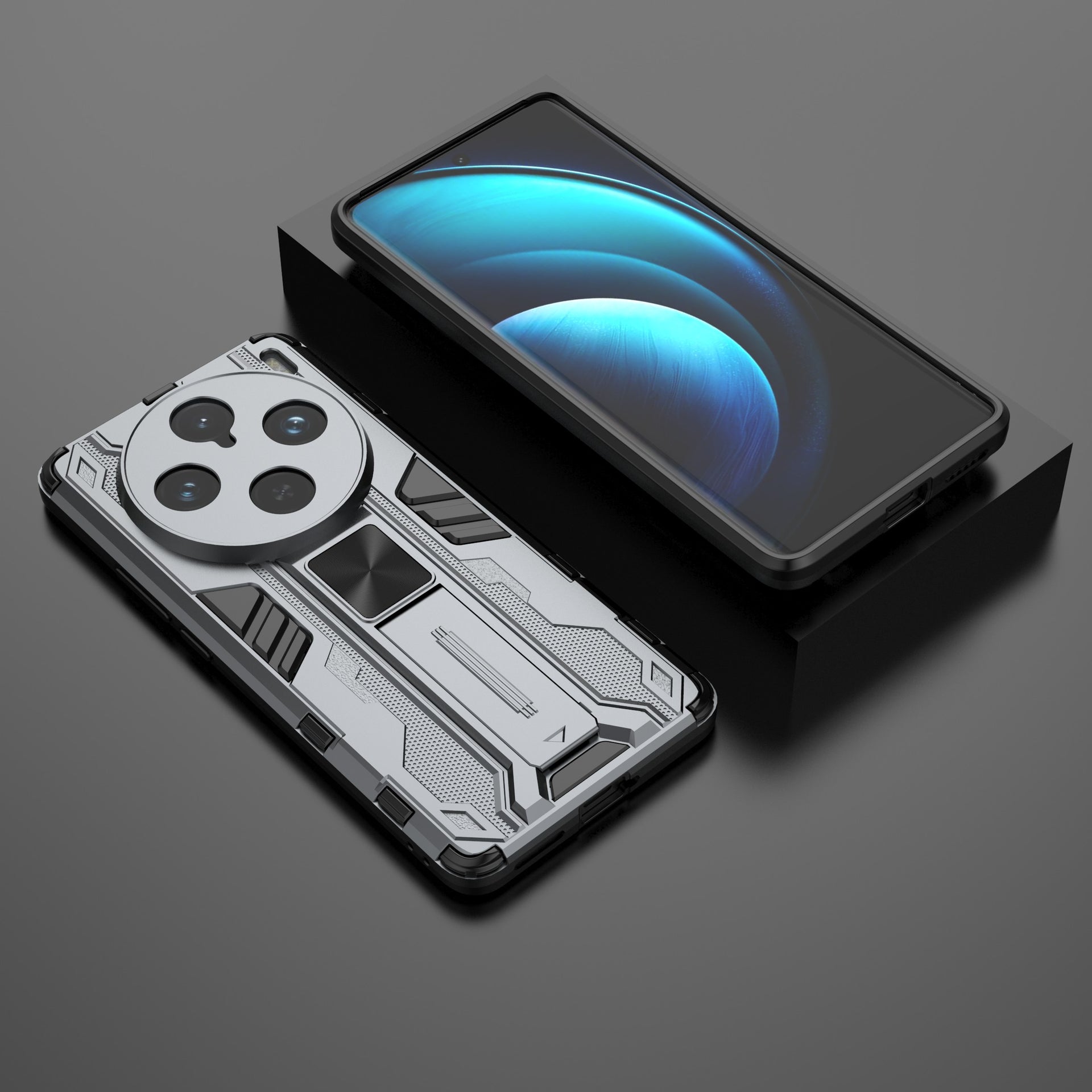 For vivo X100 Pro 5G Phone Case with Kickstand PC+TPU Anti-Fall Cover - Grey