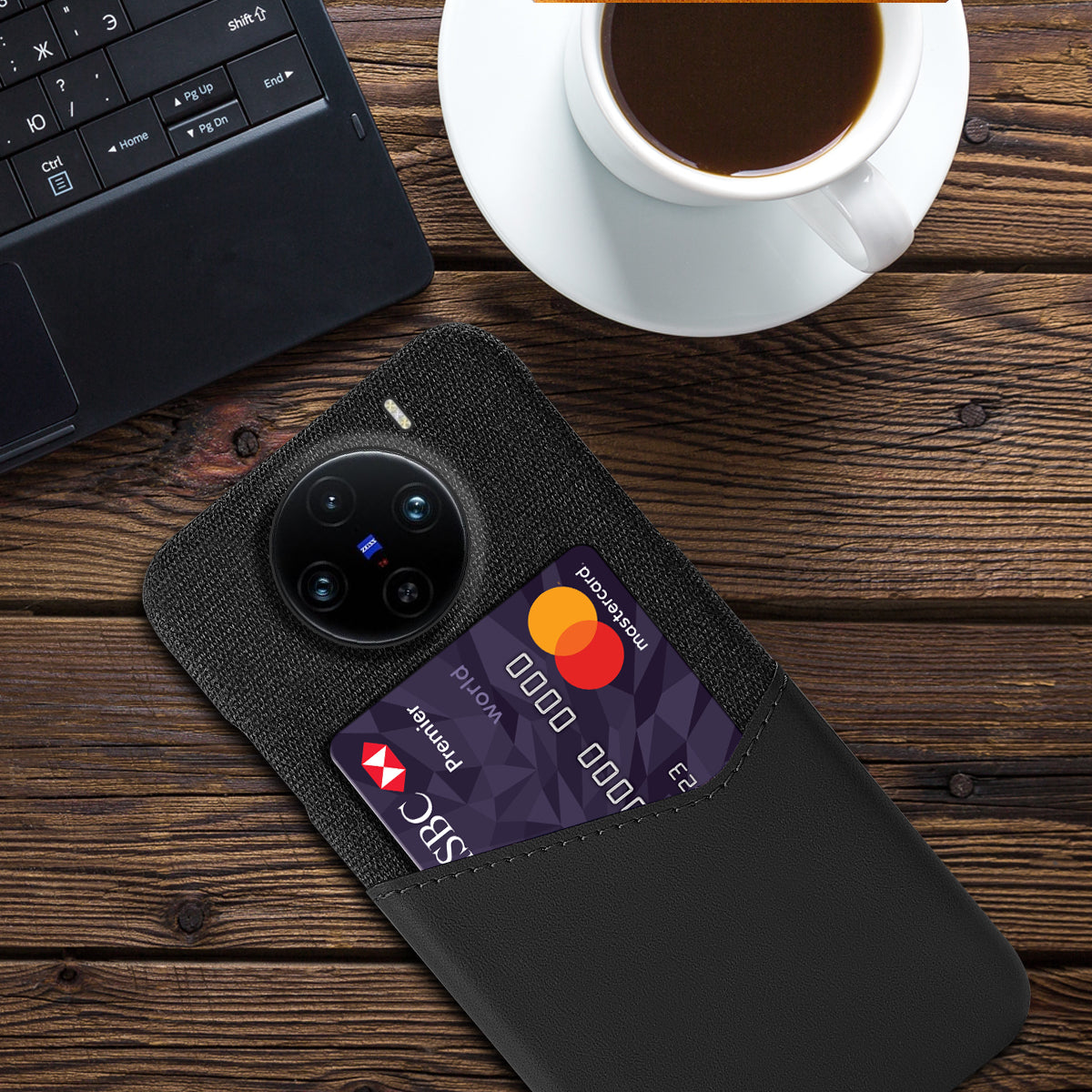 For vivo X100 Pro 5G Protective Case with Card Holder PU Leather+PC Scratch Resistant - Black