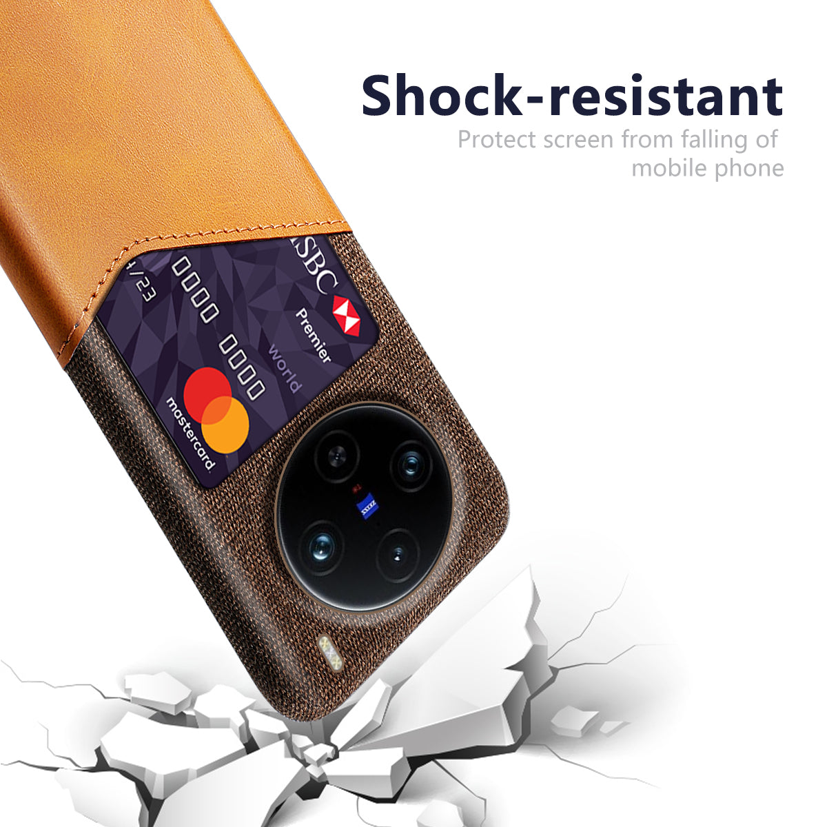For vivo X100 Pro 5G Protective Case with Card Holder PU Leather+PC Scratch Resistant - Orange