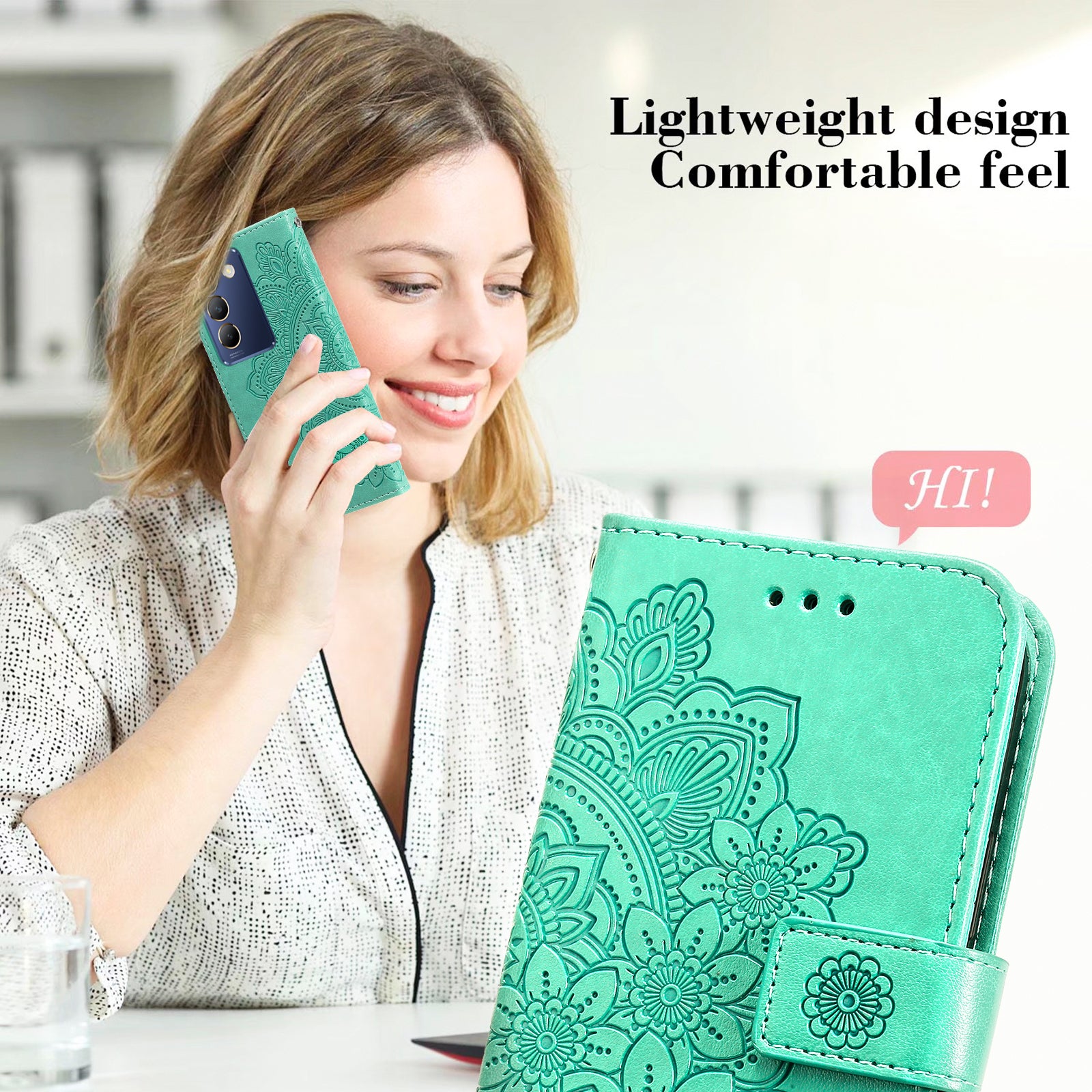 - Premium PU leather+TPU material, with a distinctive flower pattern imprinting, stylish and durable