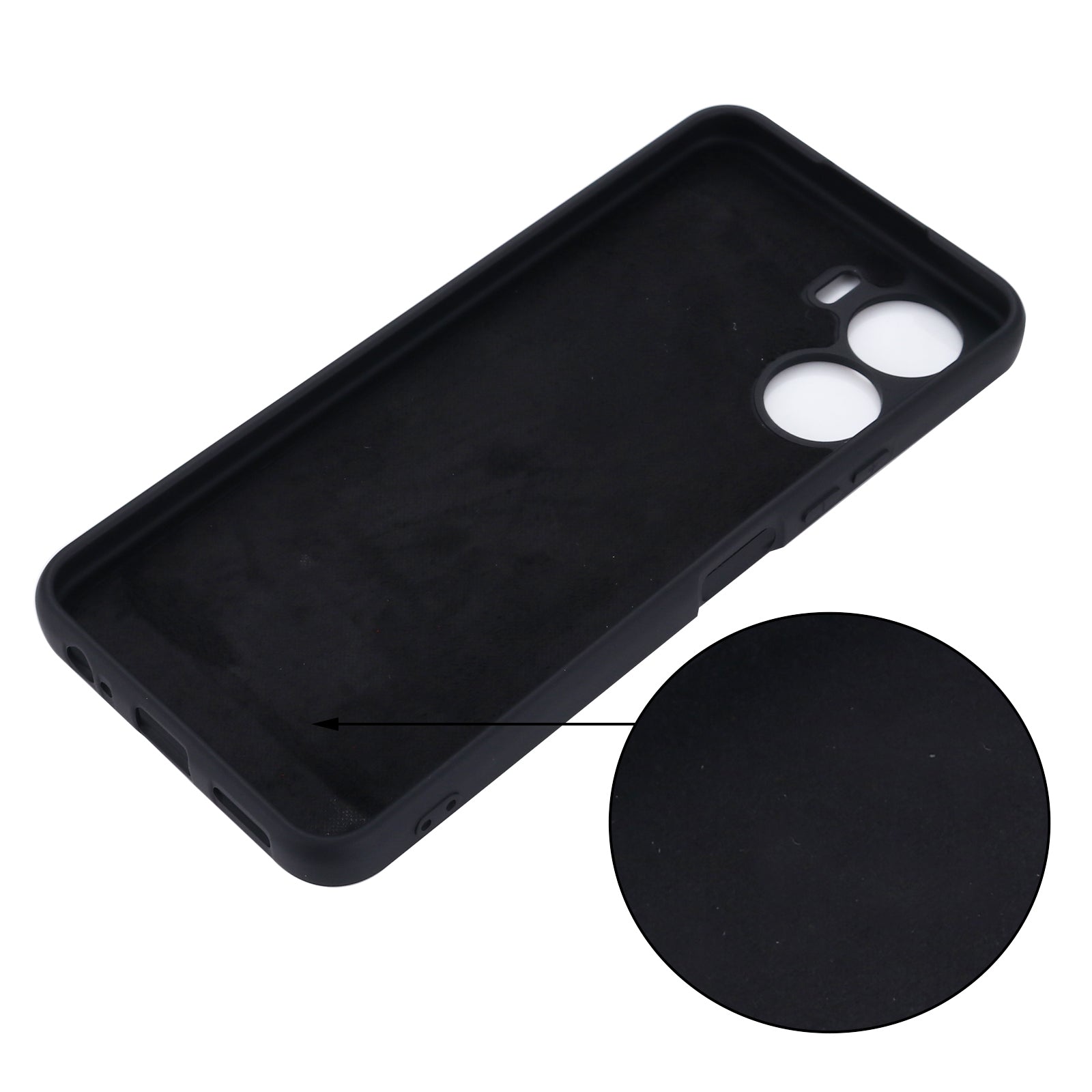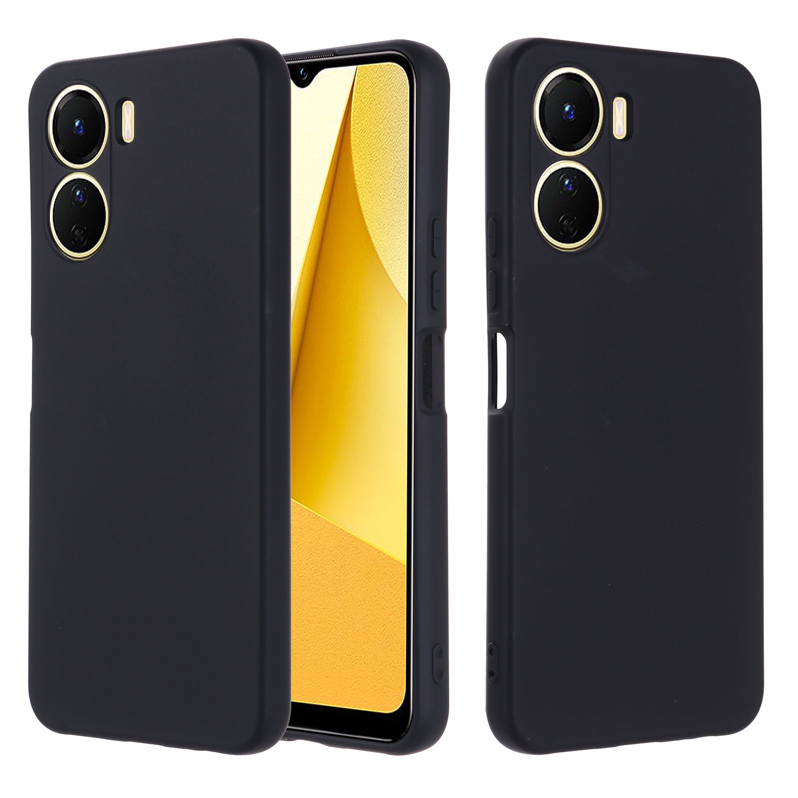 For vivo Y16 4G Phone Case, Liquid Silicone + Soft Lining Protective Back Cover with Strap - Black