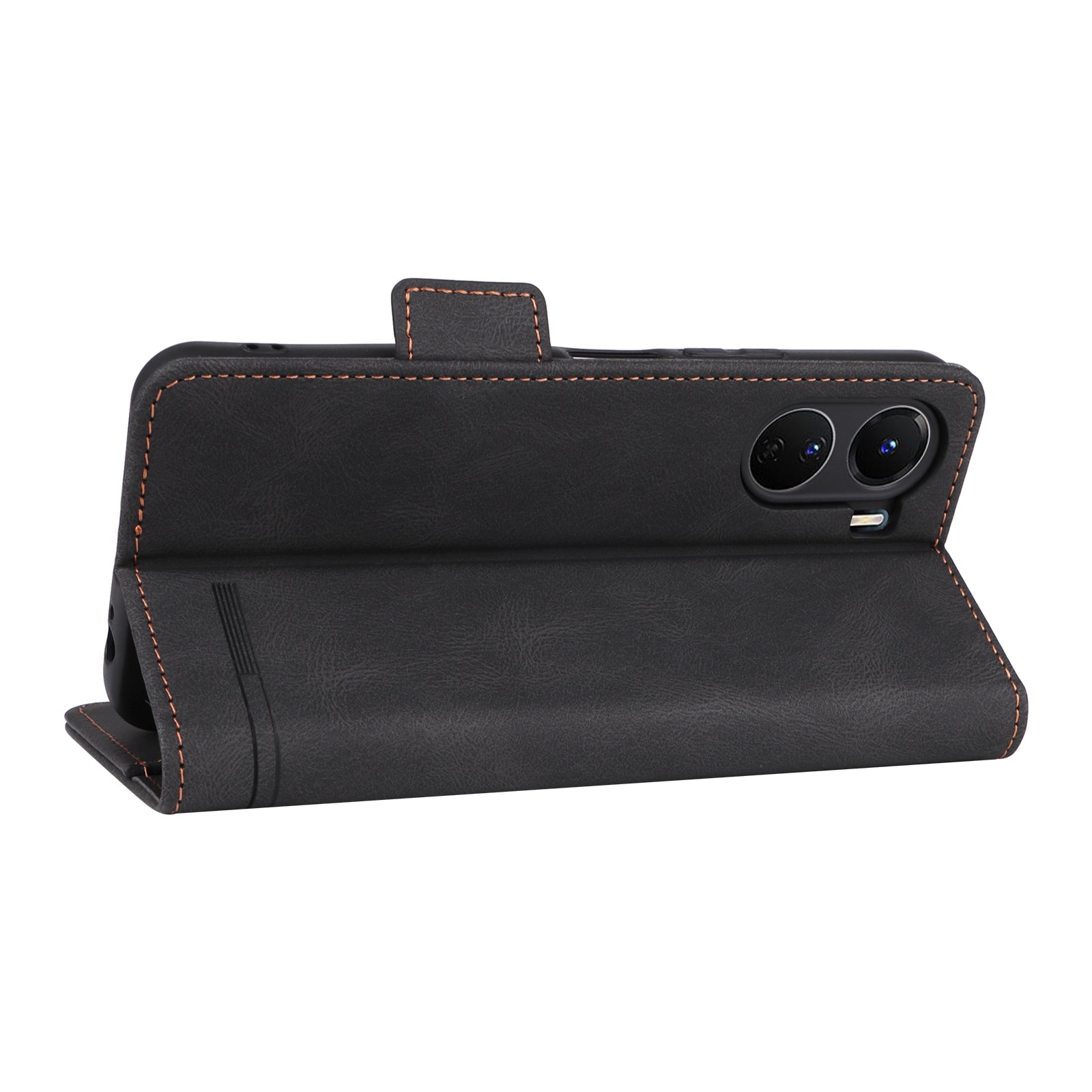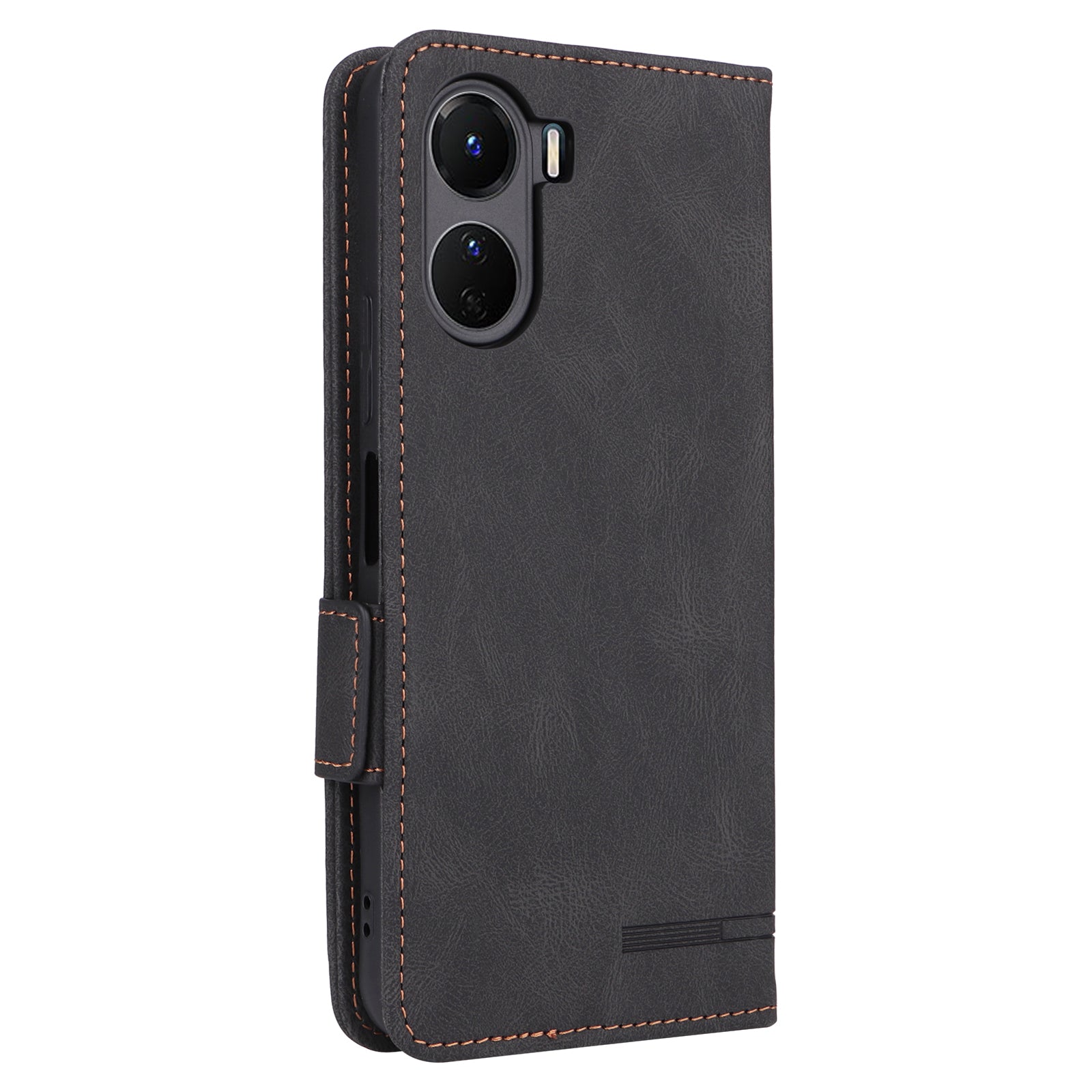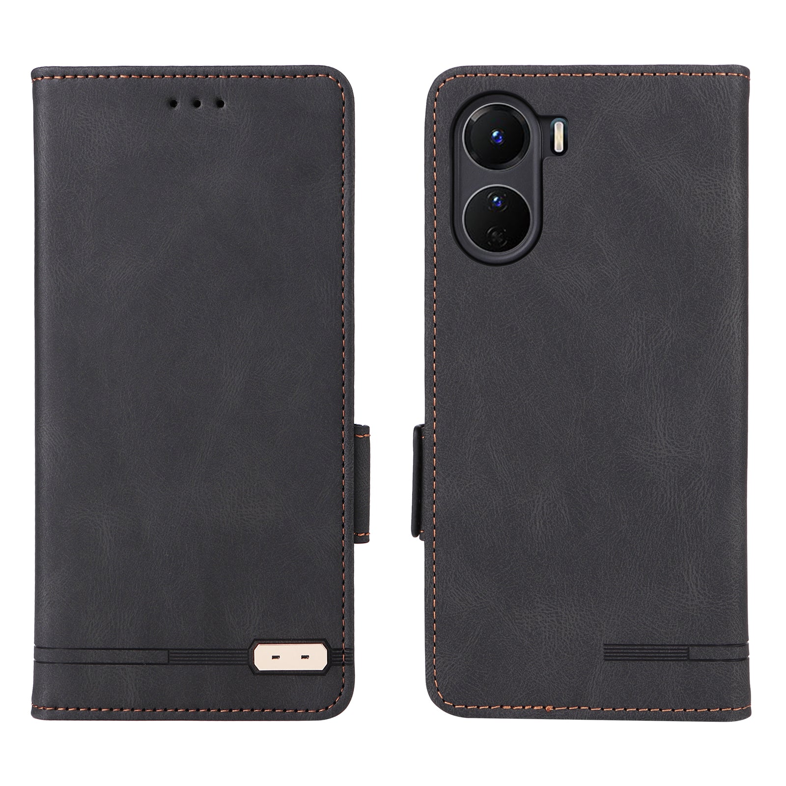 For vivo Y16 4G PU Leather Anti-drop Case Hardware Decor Dual Magnetic Clasp Wallet Stand Phone Cover - Black