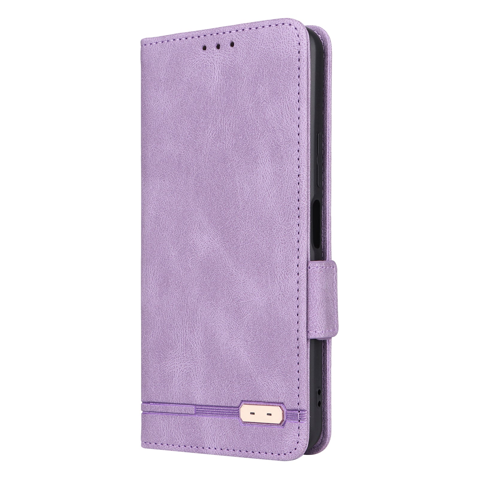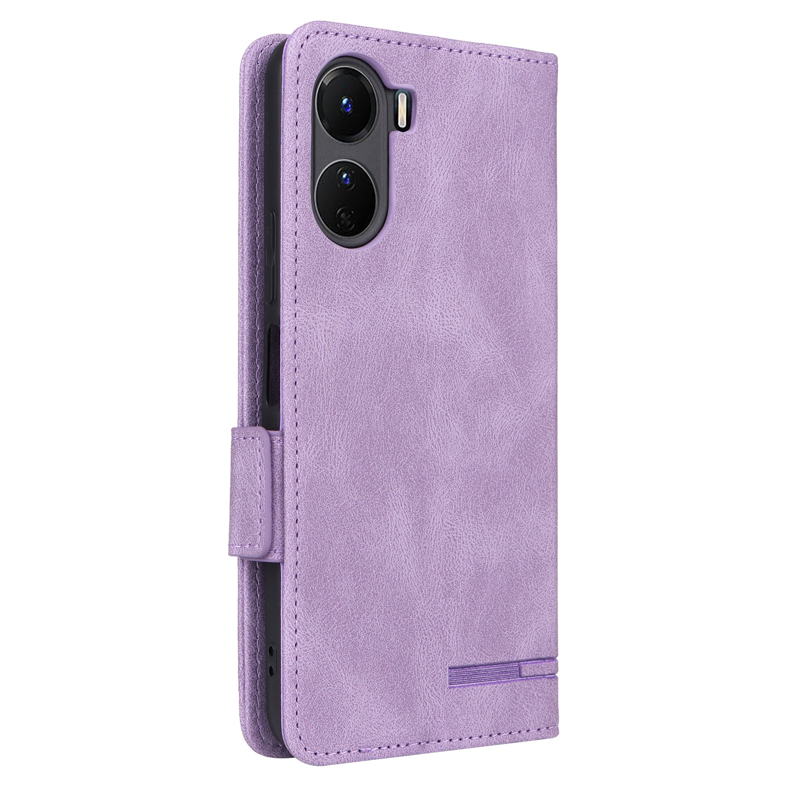 For vivo Y16 4G PU Leather Anti-drop Case Hardware Decor Dual Magnetic Clasp Wallet Stand Phone Cover - Purple