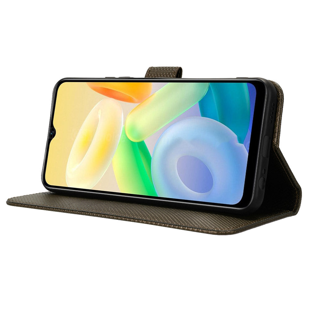 For vivo Y16 4G / Y02s 4G / Y35 5G / Y35m 5G / Y53t 5G / Y56 5G / iQOO Z7i / T2x (India) 5G Diamond Texture Phone Wallet Cover Folio Flip PU Leather+TPU Foldable Stand Case - Brown