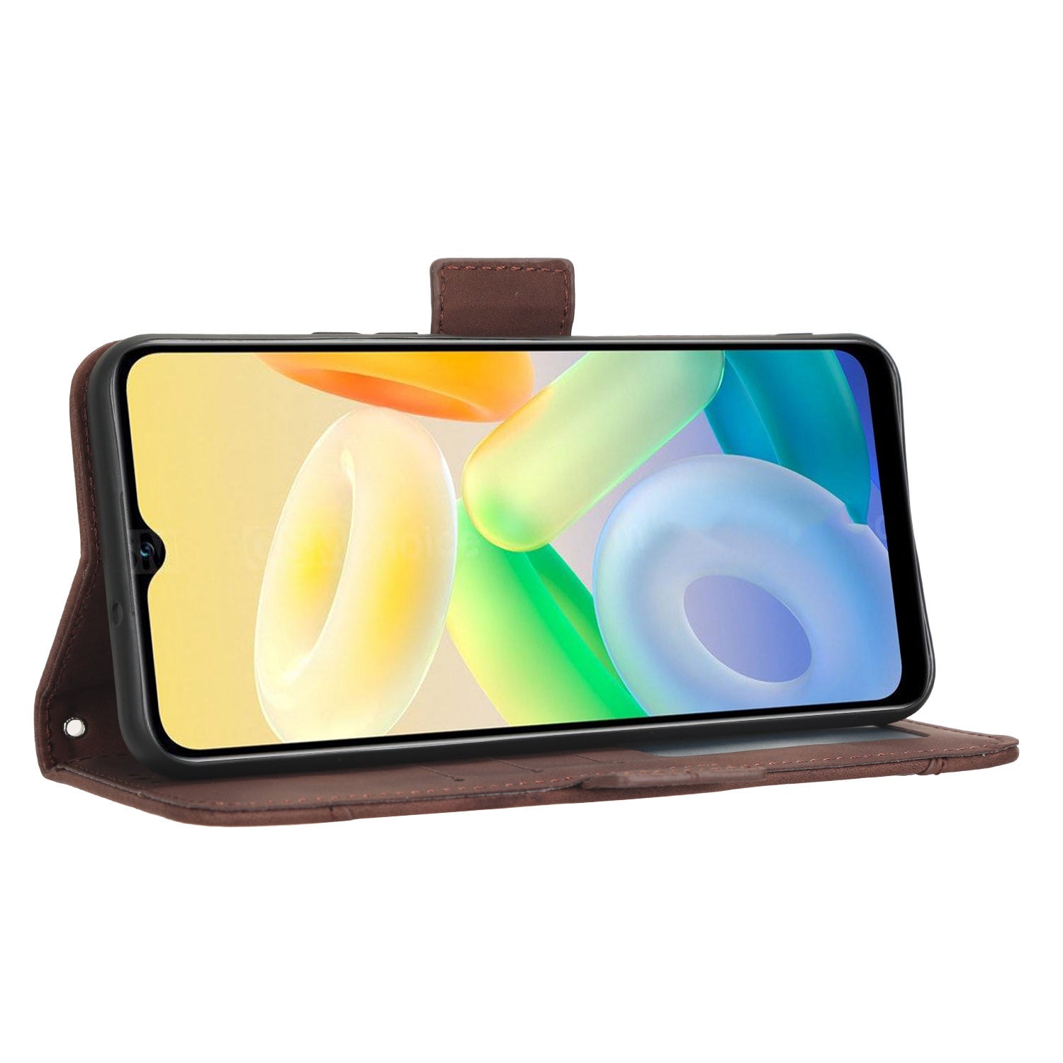 For vivo Y16 4G / Y02s 4G / Y35 5G / Y35m 5G / Y53t 5G / Y56 5G / iQOO Z7i / T2x (India) 5G Multiple Card Slots PU Leather Wallet Stand Cover Dual Magnetic Clasp Phone Shockproof Case - Brown