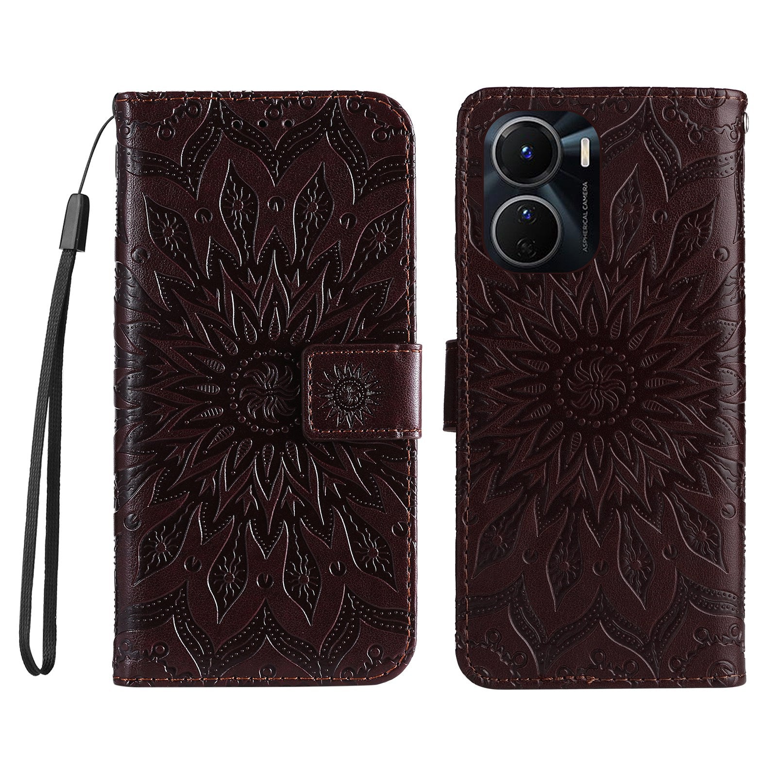 KT Imprinting Flower Series-1 for vivo Y16 4G / Y02s 4G Adjustable Stand Phone Wallet Cover Sunflower Imprinted PU Leather Shockproof Phone Case - Brown