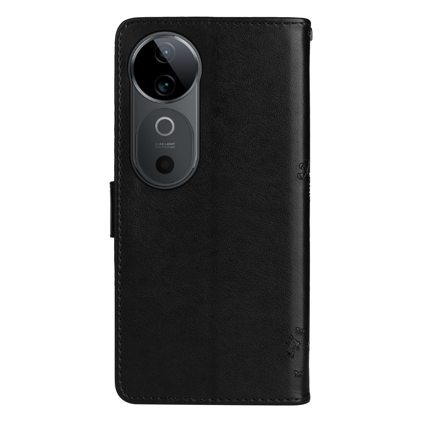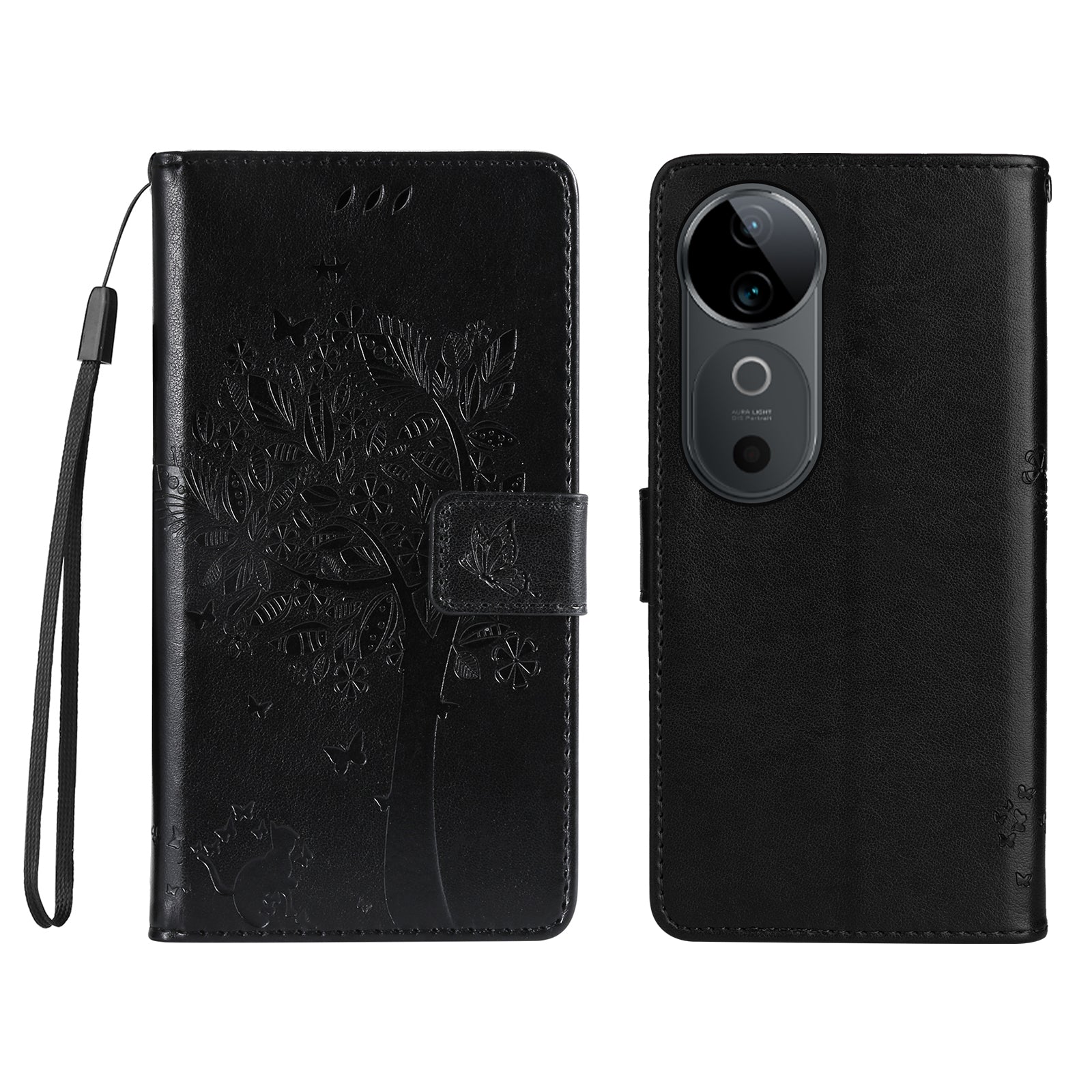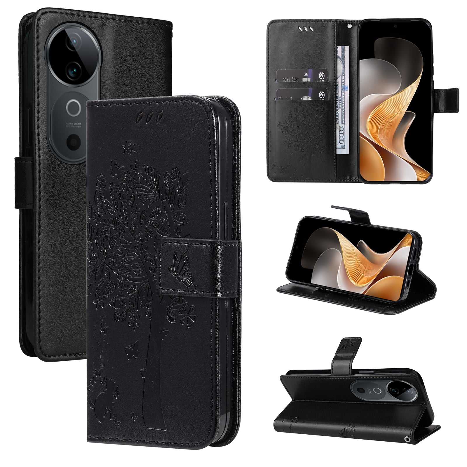 KT Imprinting Flower Series-3 For vivo S19 5G / V40 5G Leather Phone Case Cat Tree Pattern - Black