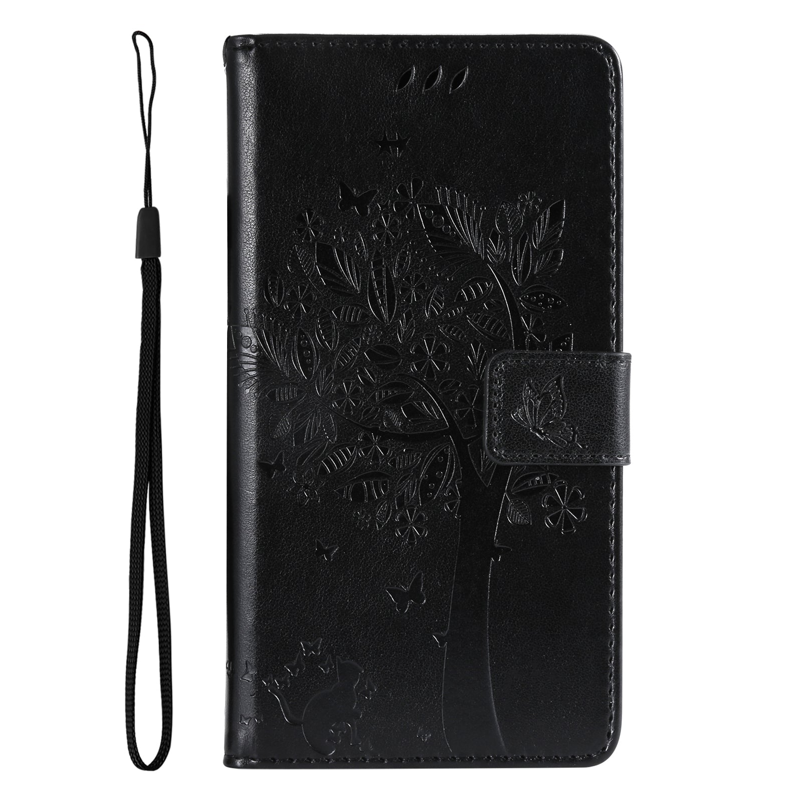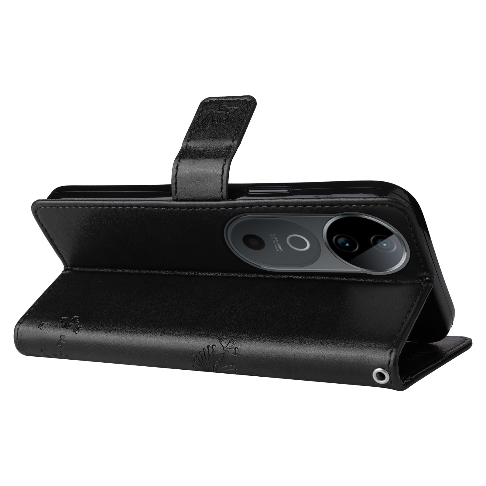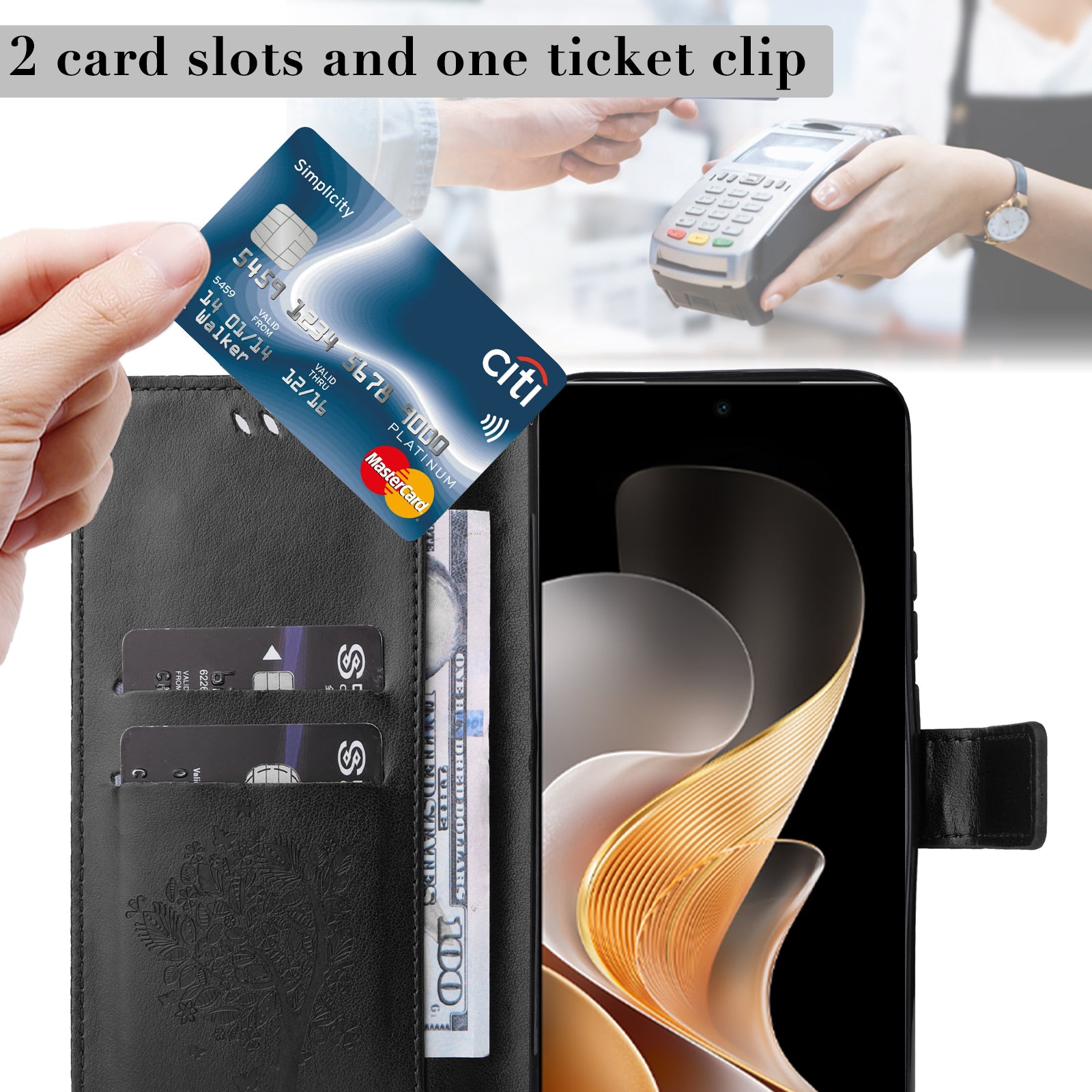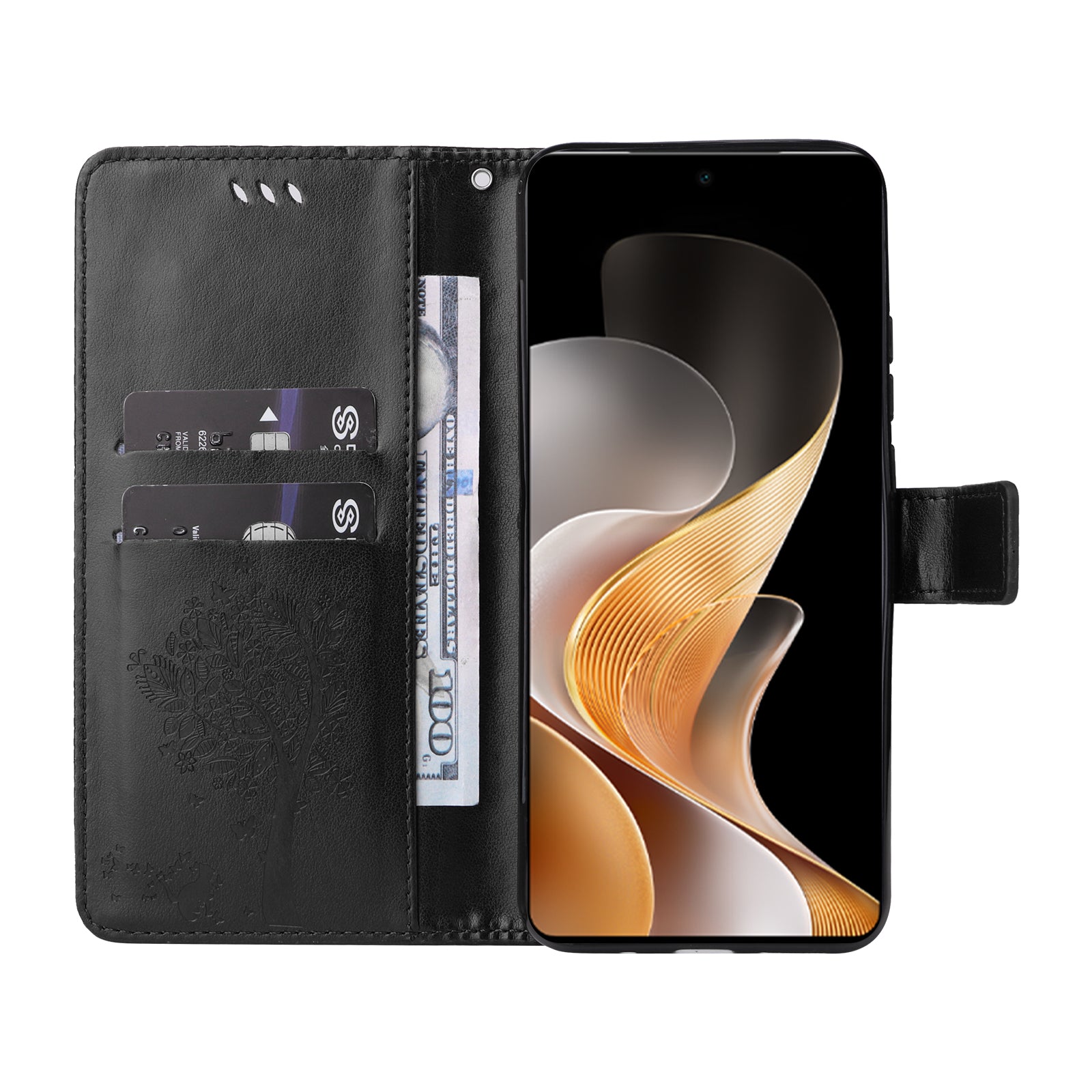 KT Imprinting Flower Series-3 For vivo S19 5G / V40 5G Leather Phone Case Cat Tree Pattern - Black