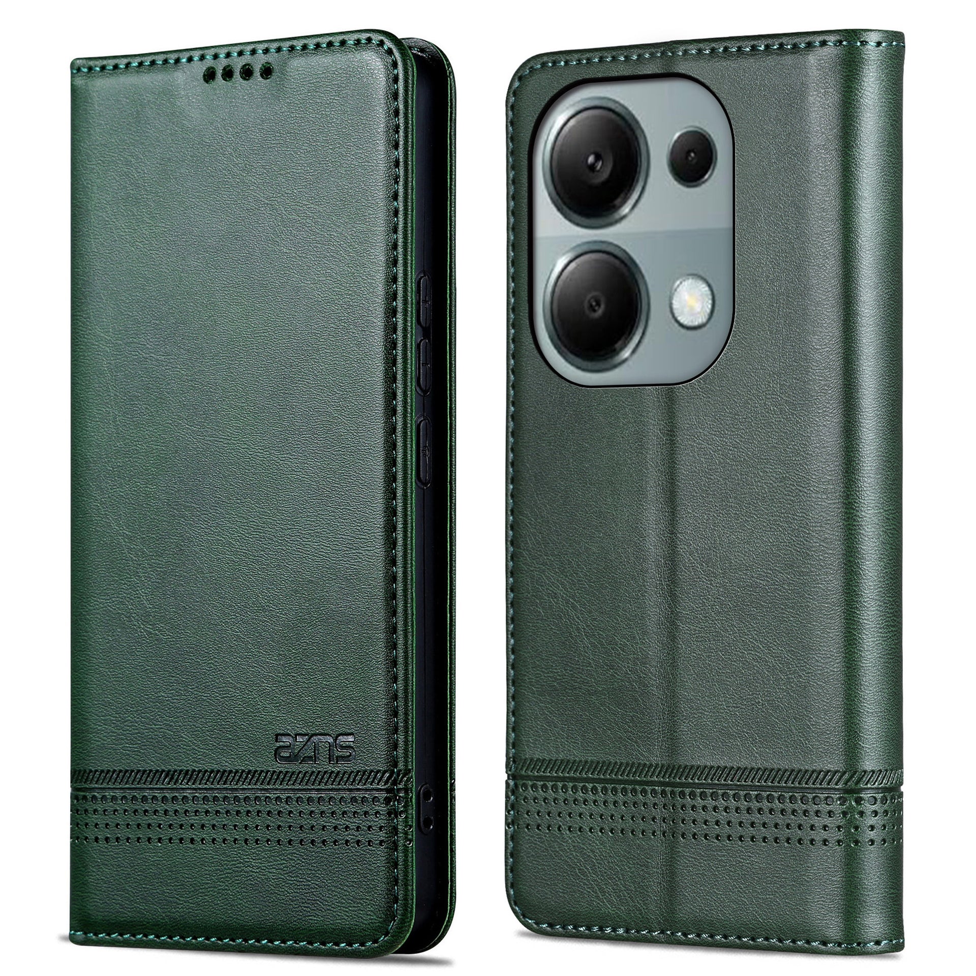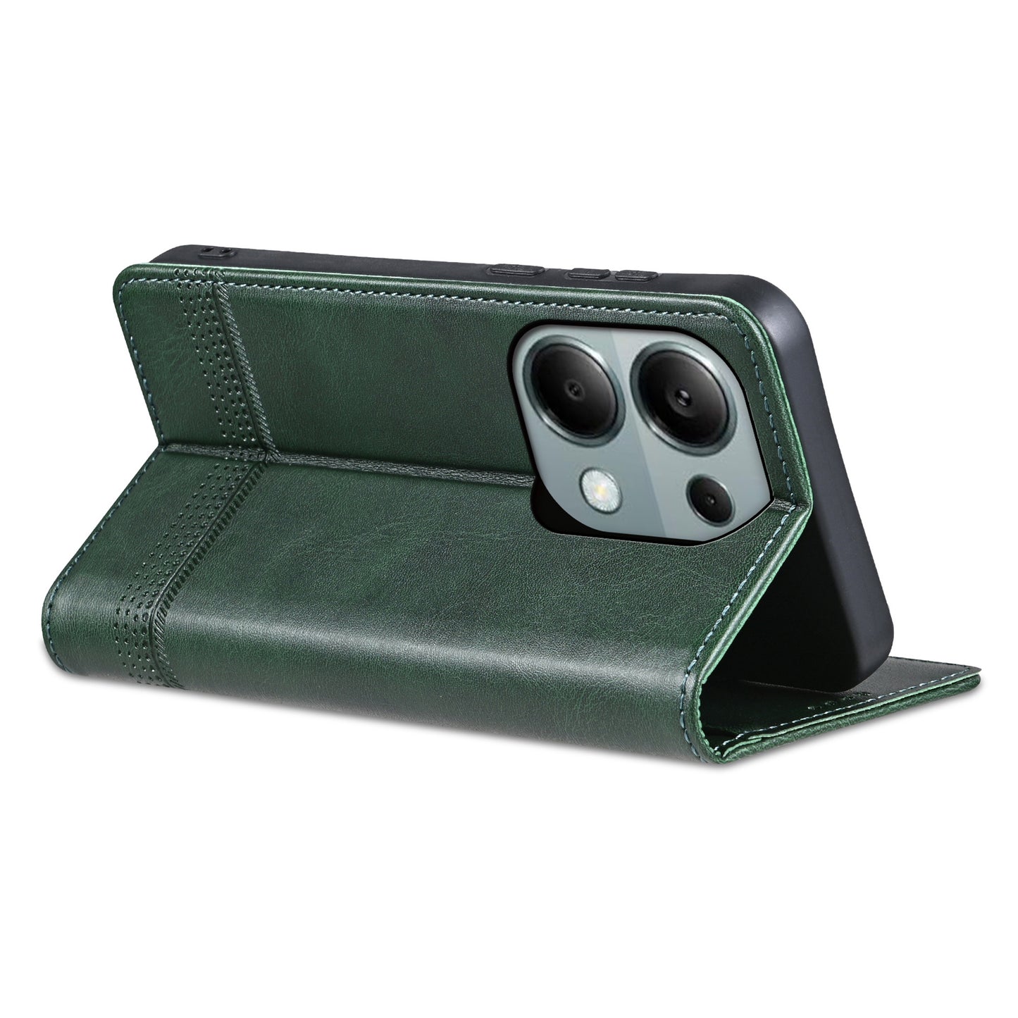 AZNS For Xiaomi Redmi Note 13 Pro 4G / Poco M6 Pro 4G Magnetic Case PU Leather Stand Phone Cover - Green